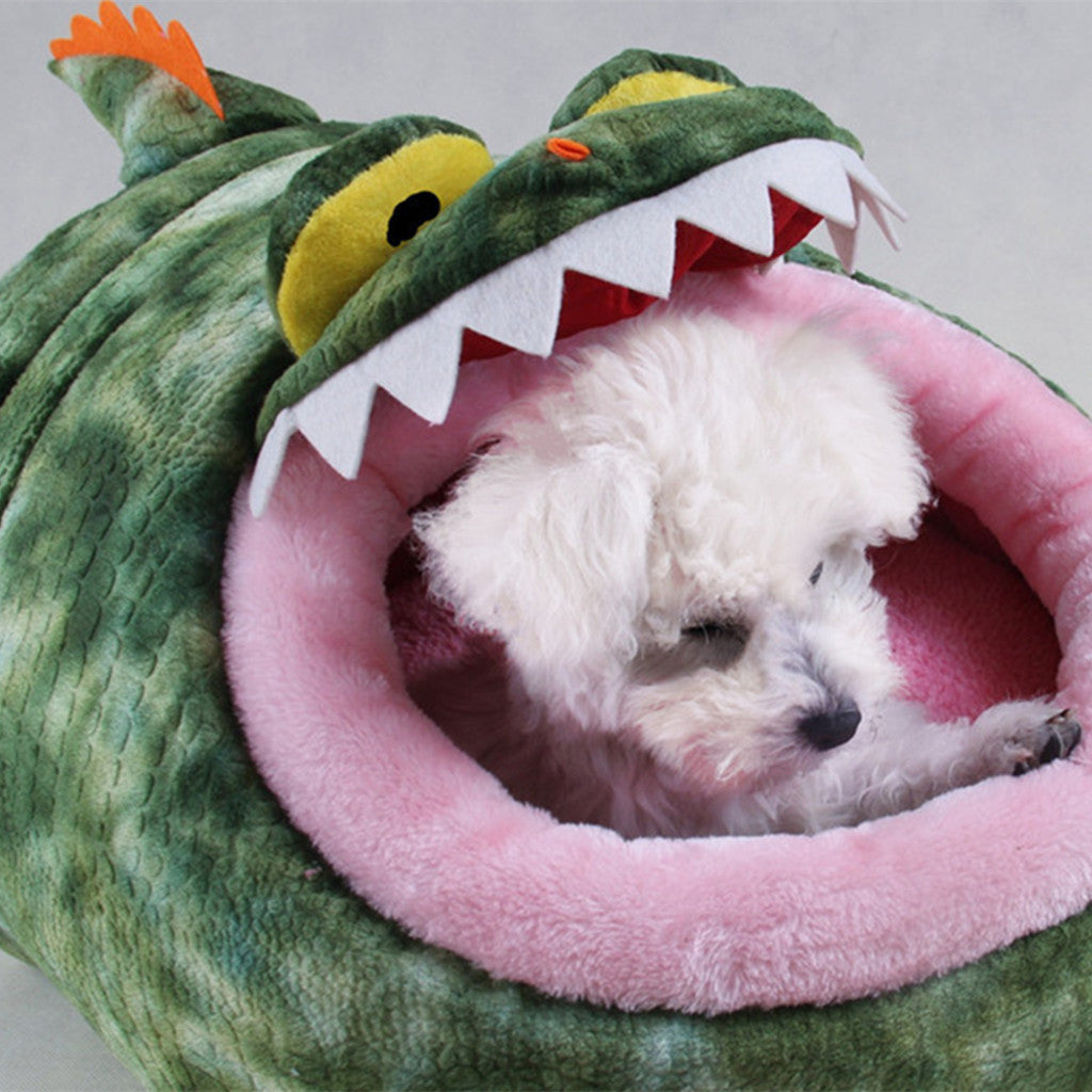 Maxbell Soft Pet Kennel Cute Crocodile Warm Bed House Small Dog Cat Puppy House M