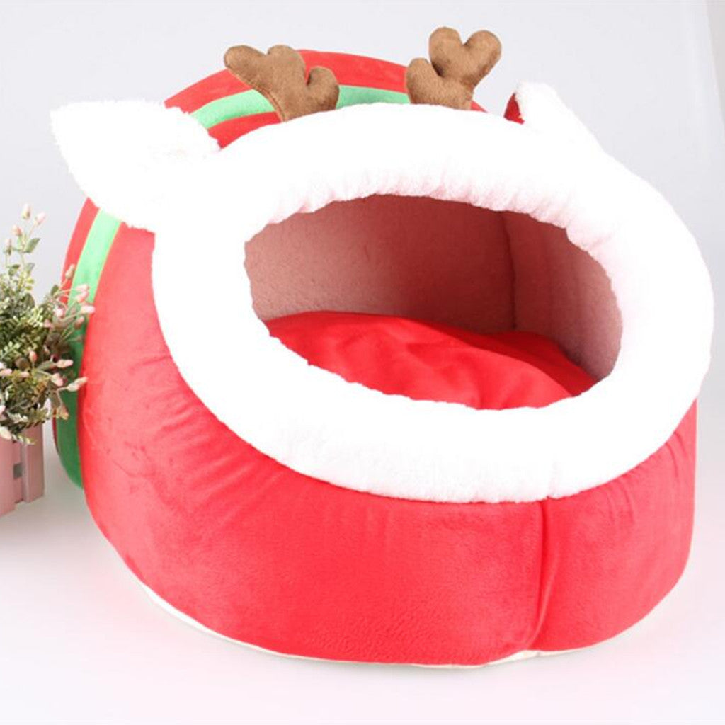 Maxbell Soft Pet Kennel Cute Reindeer Warm Bed House Small Dog Cat Puppy House S