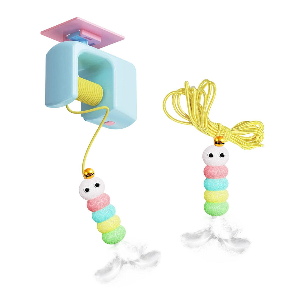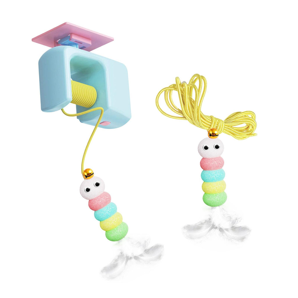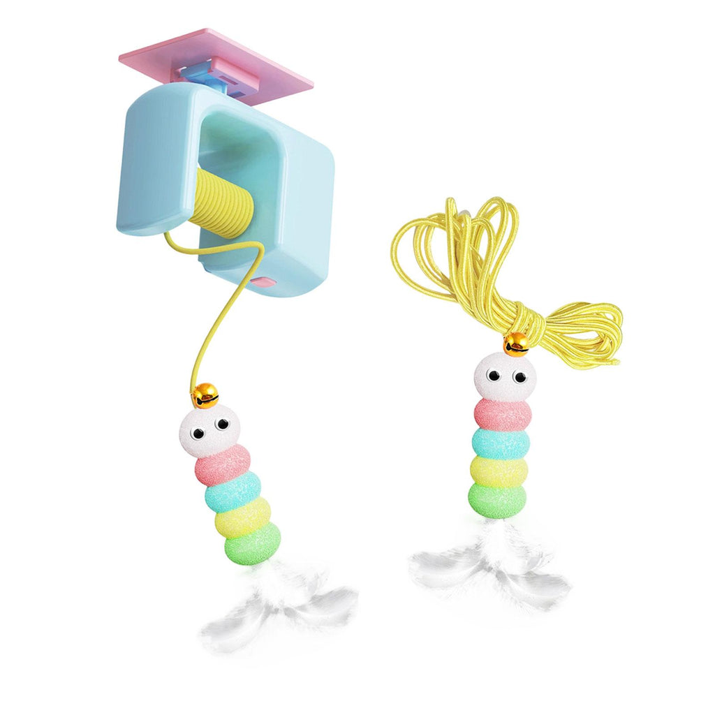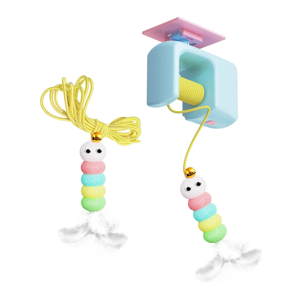 【Compact Design】: The Cat Toy for indoor cats features a compact size with dimensions of 8.5x4x7cm for the hanger, a 9.5x3x3cm caterpillar decoration, and a 7.5cm feather toy, making it easy to fit in any space without clutter