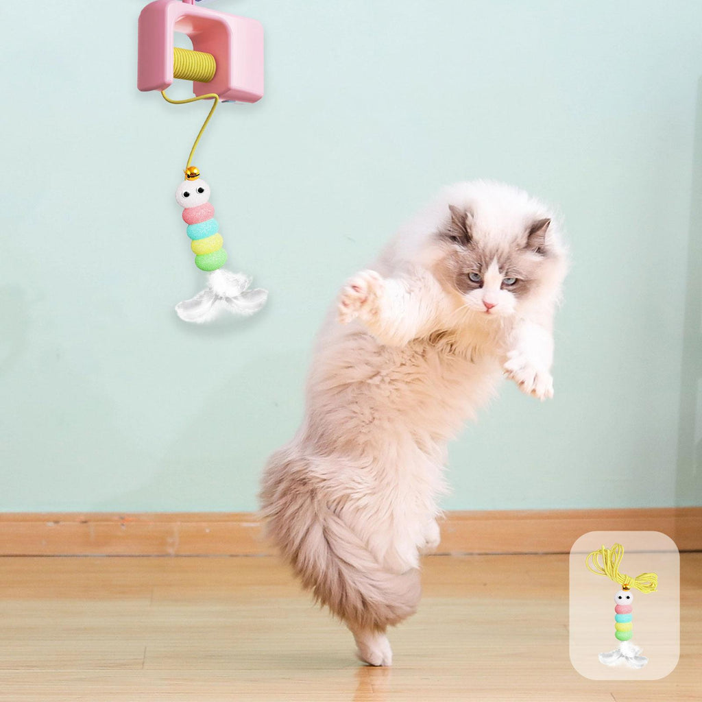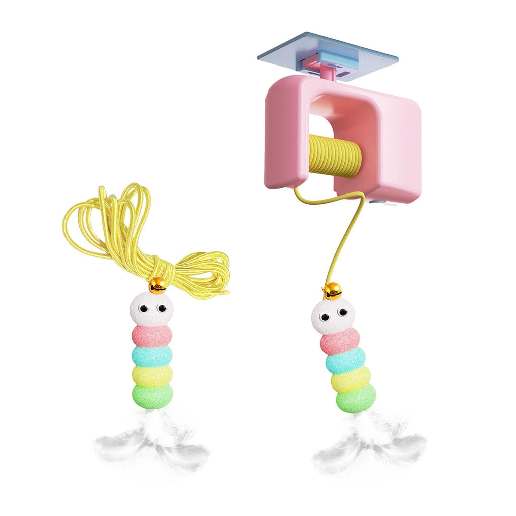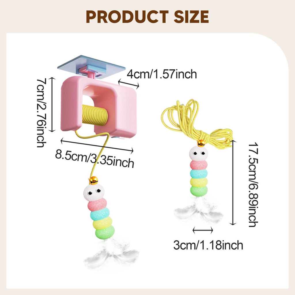 【Compact Design】: The Cat Toy for indoor cats features a compact size with dimensions of 8.5x4x7cm for the hanger, a 9.5x3x3cm caterpillar decoration, and a 7.5cm feather toy, making it easy to fit in any space without clutter