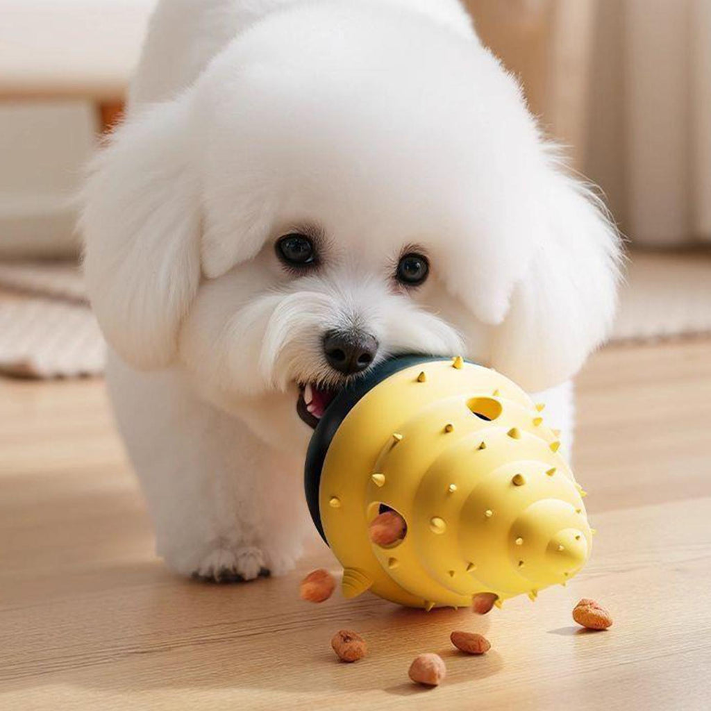 - 【Food Dispensing】Pet food dispensing ball has a food leaking function, dogs must roll or push the ball to get the food which inside the ball