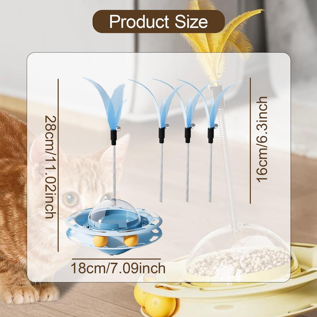 【Built in food storage】: Interactive Cat Toy has a built in food storage, which allows you to eat while playing. The food storage space has a control switch and can be adjusted to increase the fun and challenge