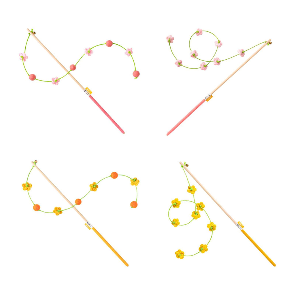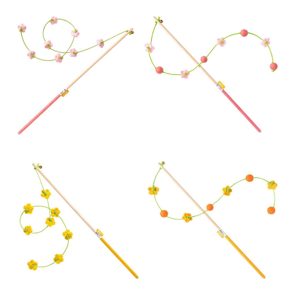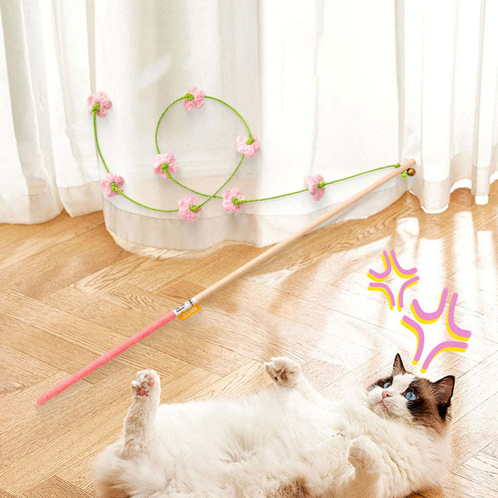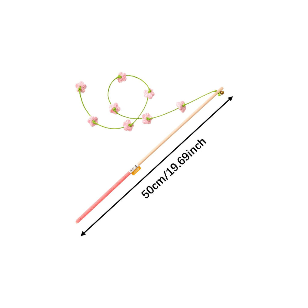 【Cute design】: This cat teasing pole features floral embellishments, a comfortable, sturdy handle, and a bell on top, making it fun for your cat to play