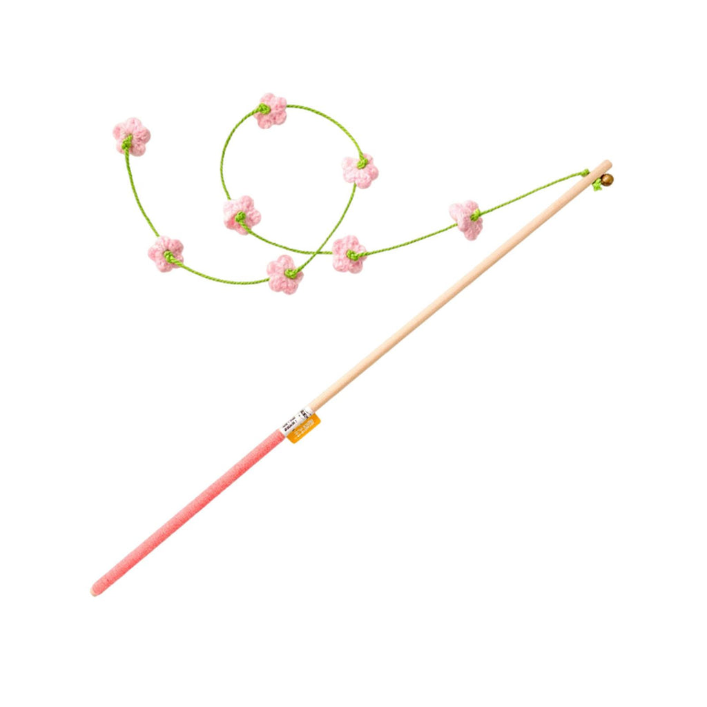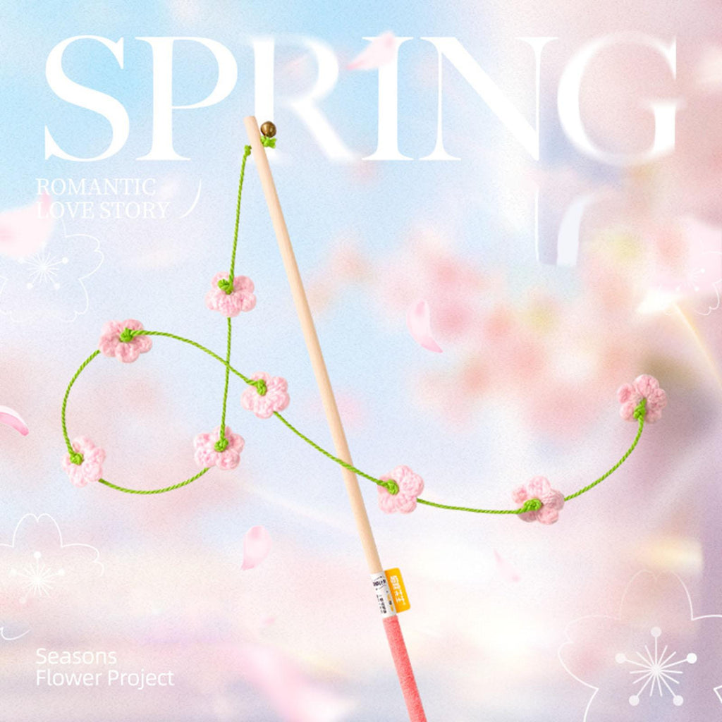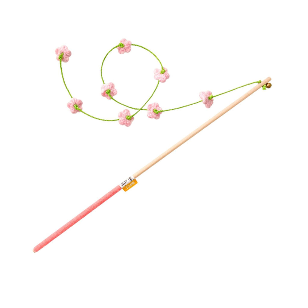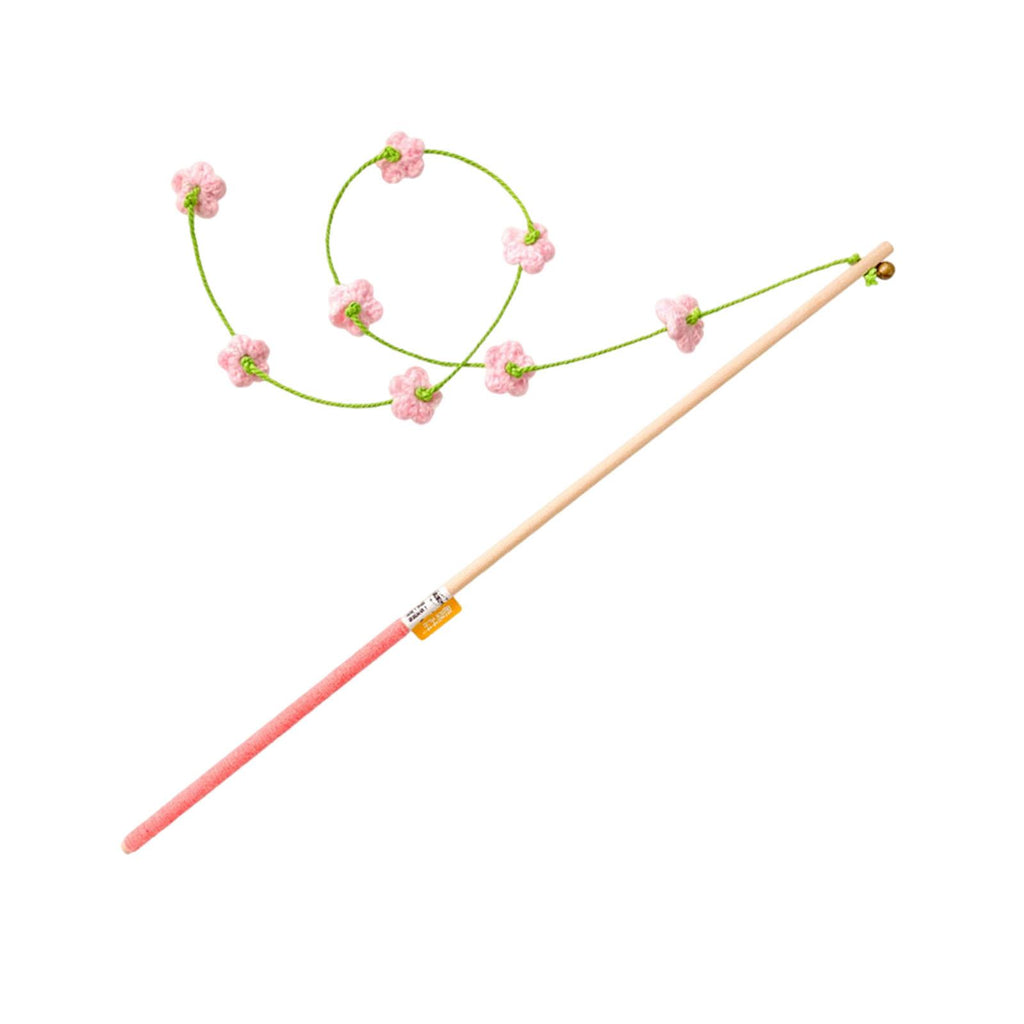 【Cute design】: This cat teasing pole features floral embellishments, a comfortable, sturdy handle, and a bell on top, making it fun for your cat to play