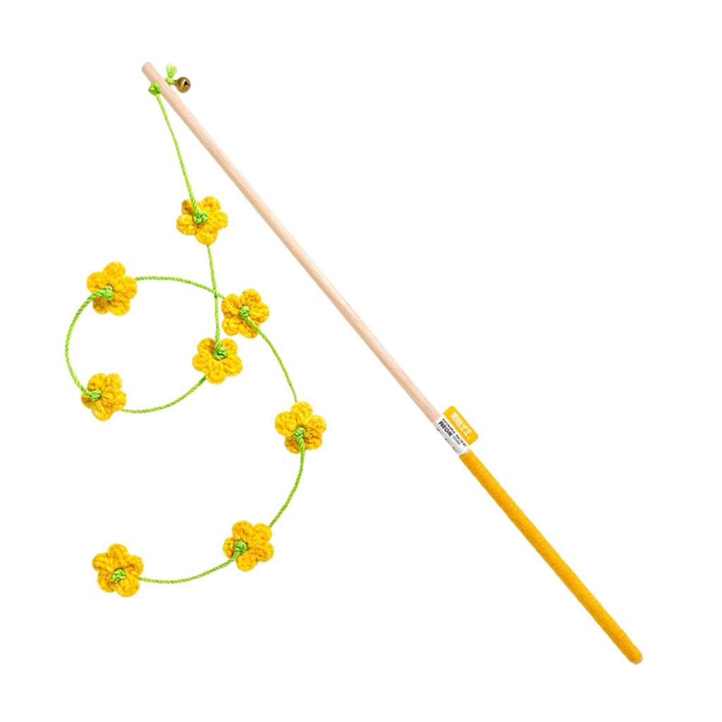 Maxbell Interactive Cat Toy Funny Handmade with Bell Play Rod for Exercise Home Yard Yellow