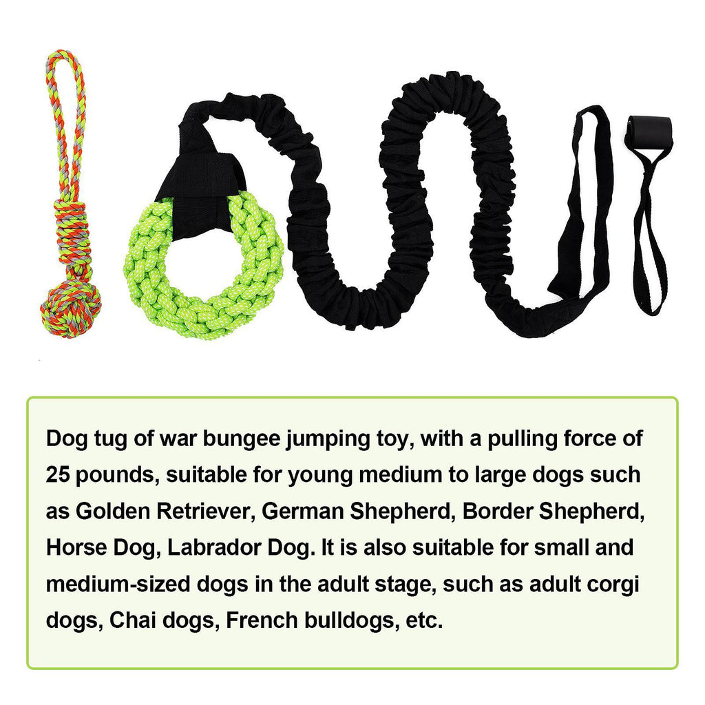 【Quality Material】: Made from durability cotton rope, the Bungee Dog Toy is designed to endure pulling while being secure for your pet's tooth and gums