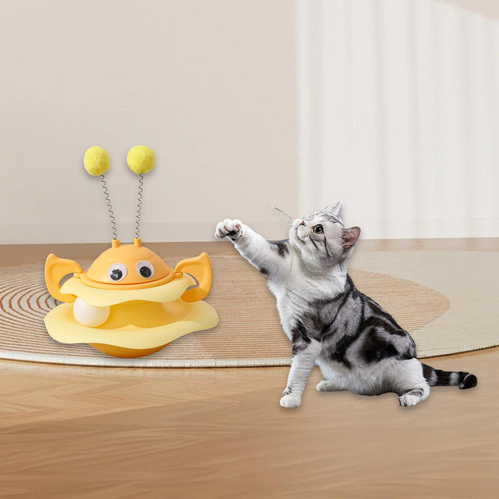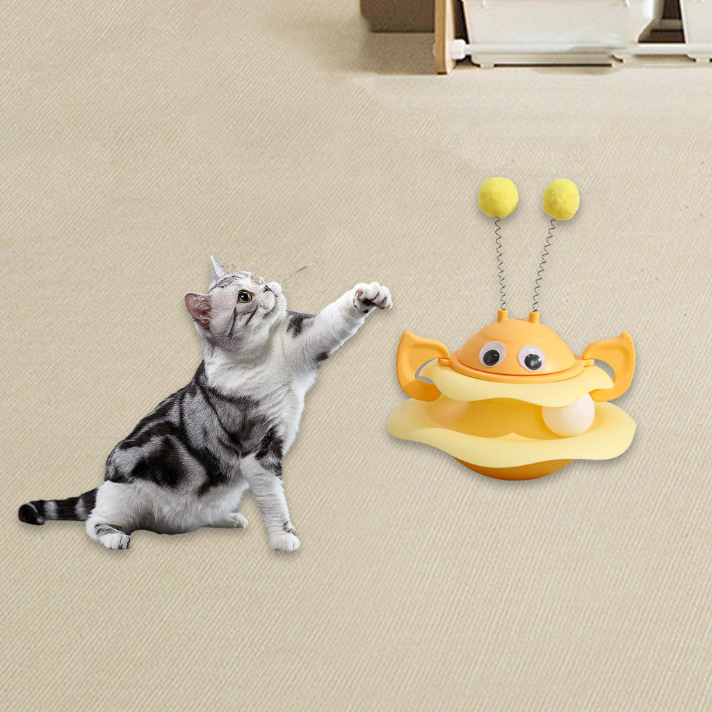Maxbell Turntable Cat Toy Wobble Spinner for Indoor Adult Cats Medium and Small Cats Yellow