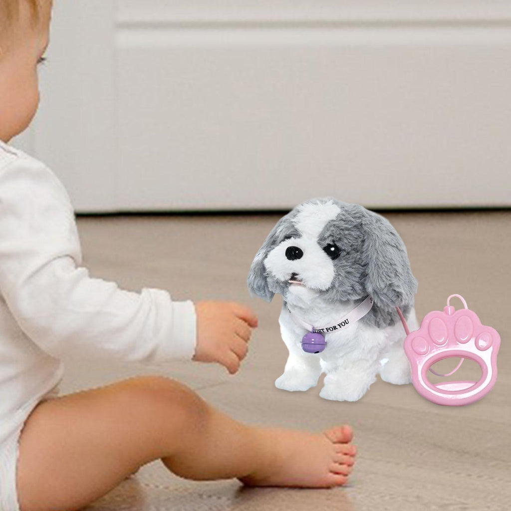 Walking Dog Toy for Girls Cute Musical Puppy Soft Interactive Electronic Pet White Gray