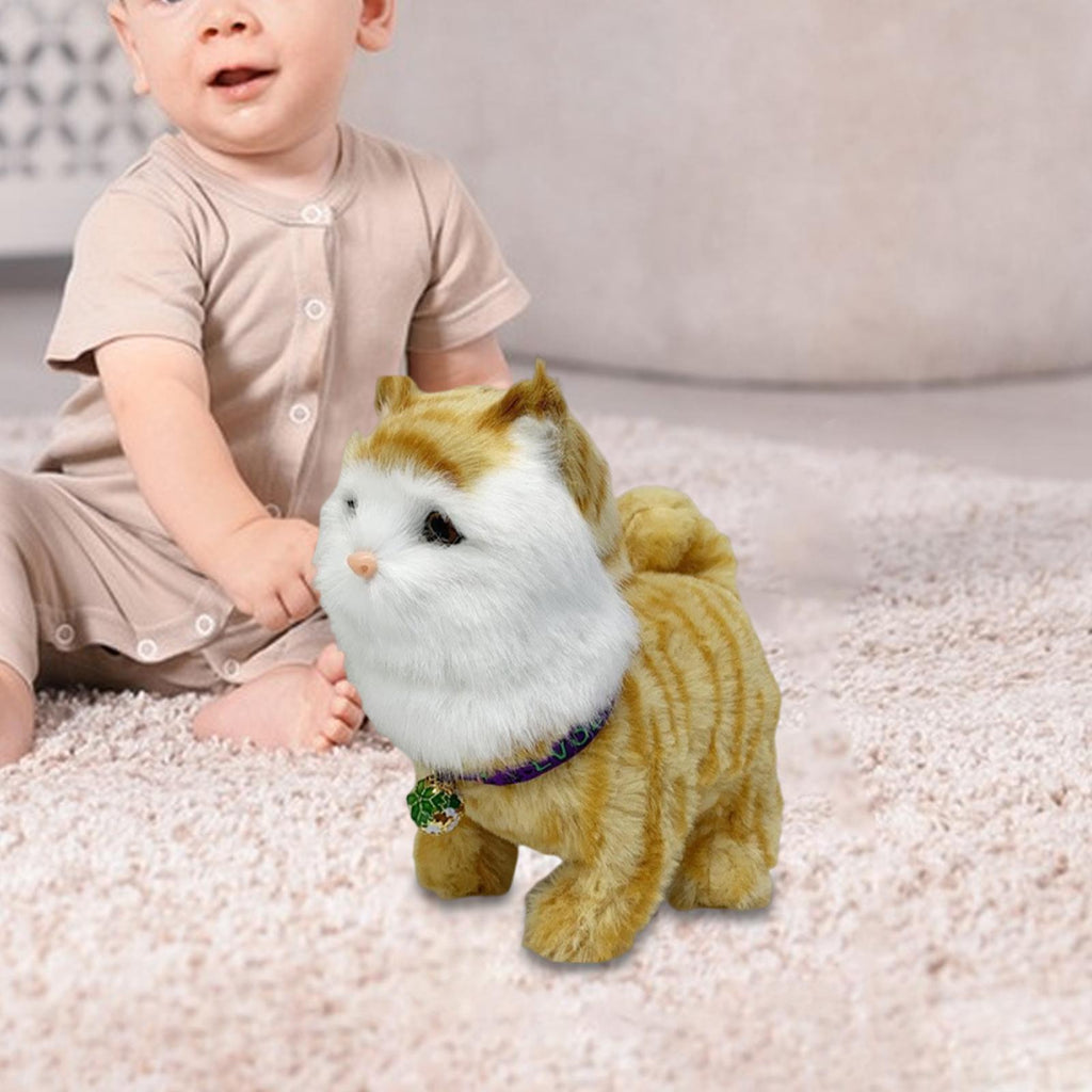 Walking Plush Cat Toy Adorable Lively Educational Electronic Pet Robotic Cat yellow