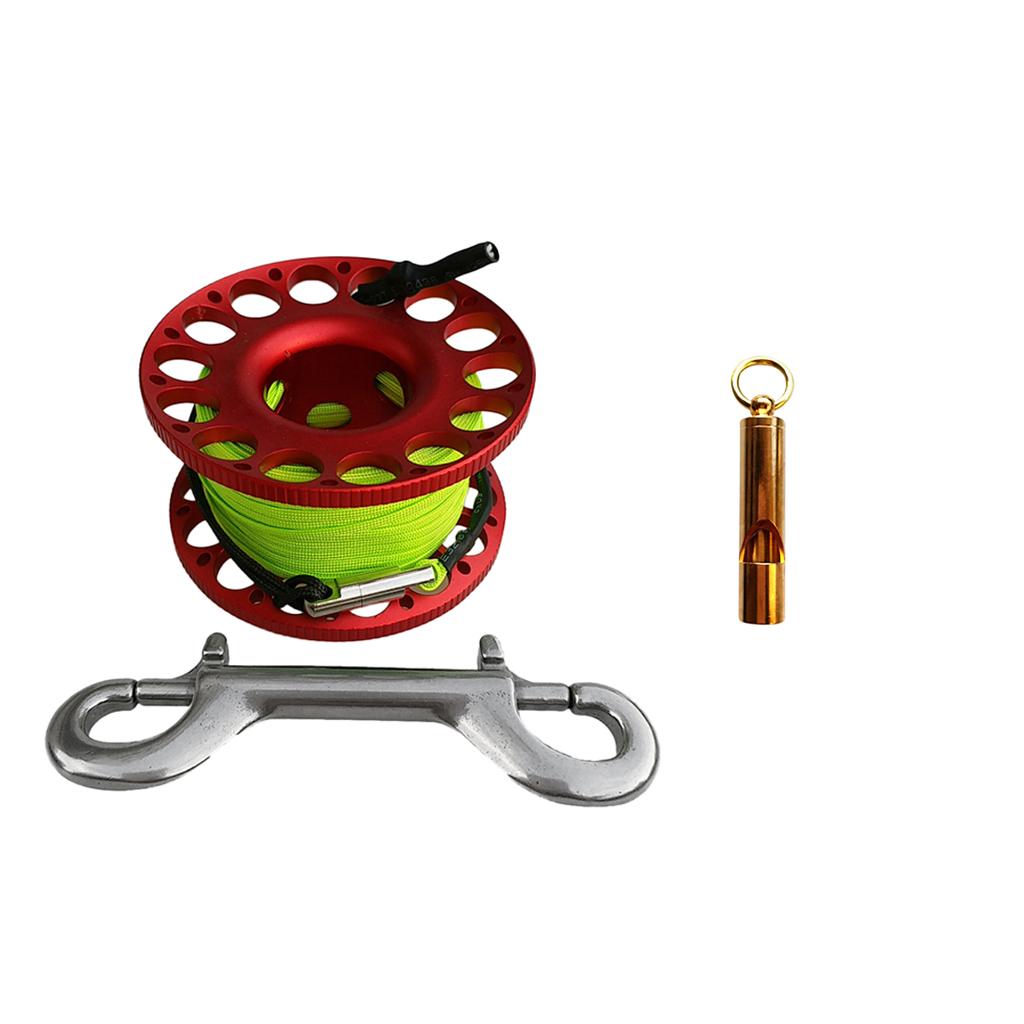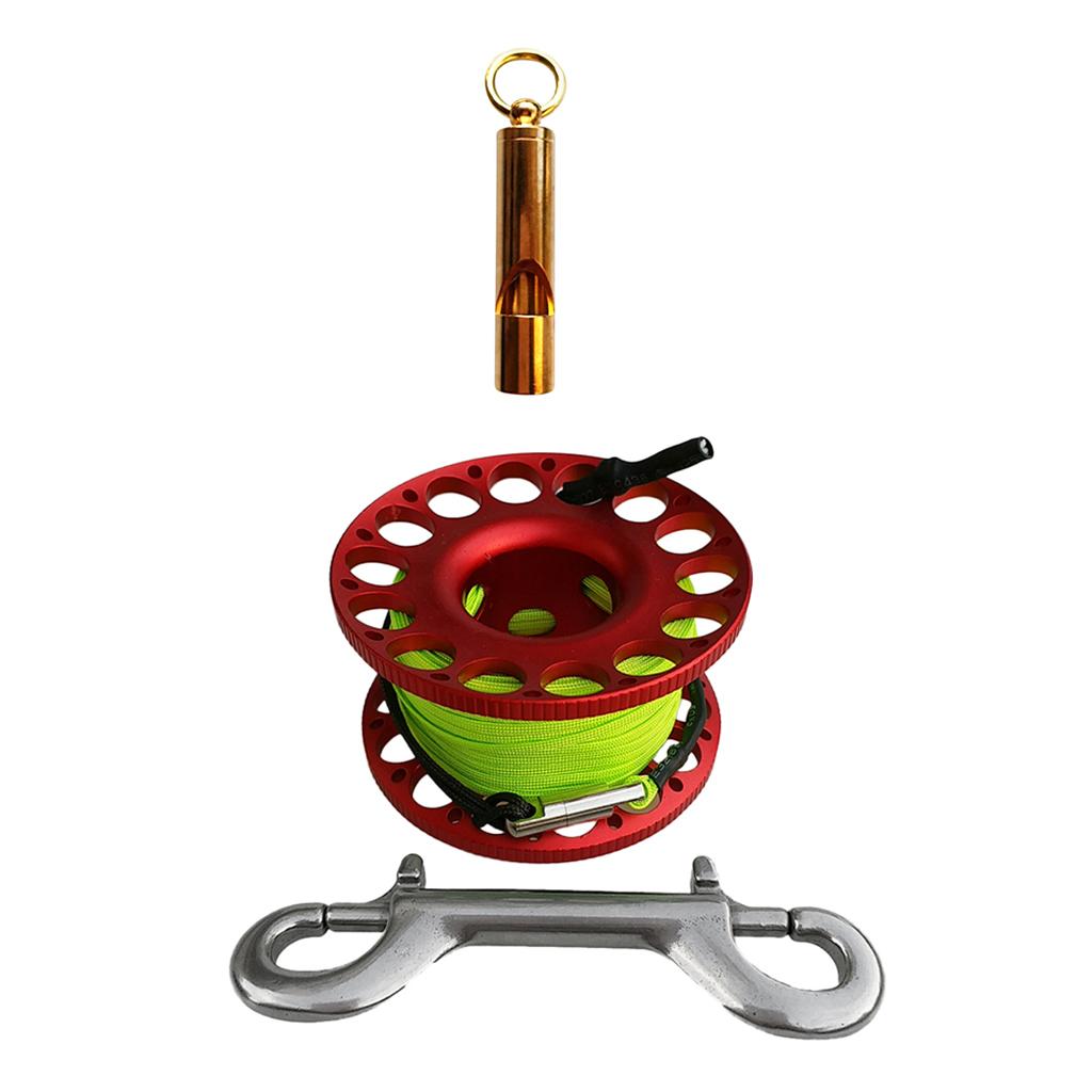 1pc plastic diving compact finger spool reel with 15m high visibility line + 1pc solid brass whistle