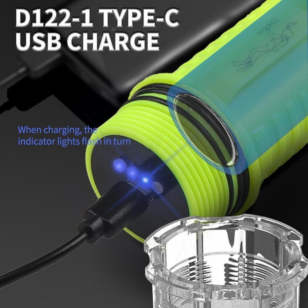 【Double Light Sources】: Equipped with two P50 bulbs, this diving flashlight offers both warm white and warm yellow light options, providing versatility for different underwater conditions