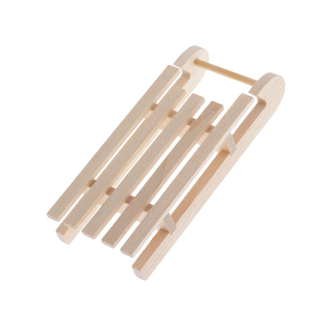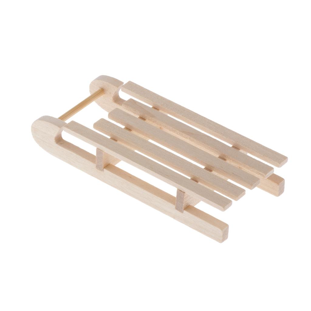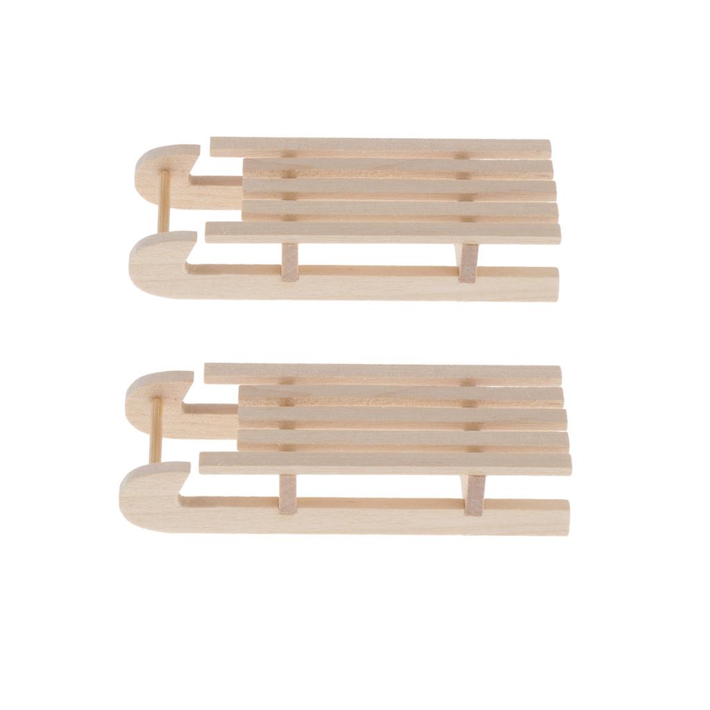 Maxbell 1/12 Dollhouse Unfinshed DIY Wooden Toboggan Sled Garden Outdoor Decor 2pcs