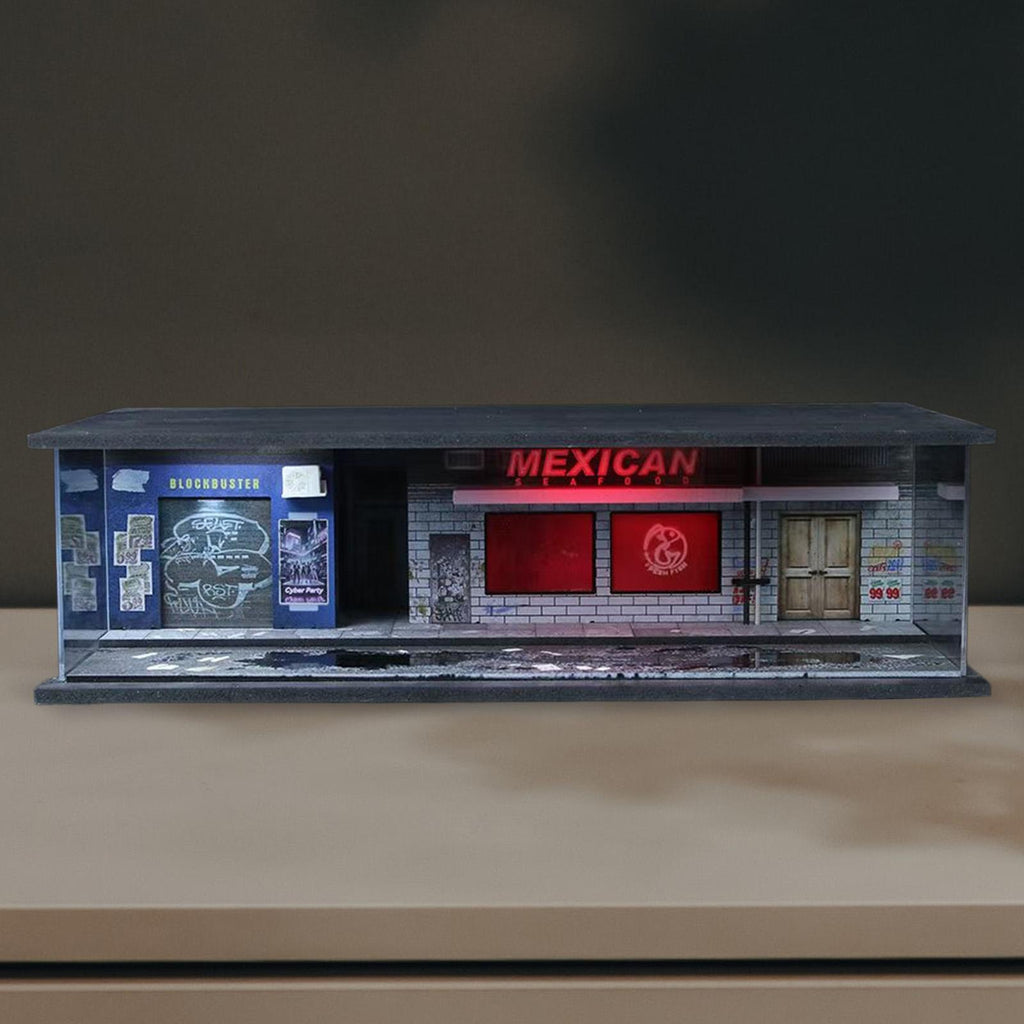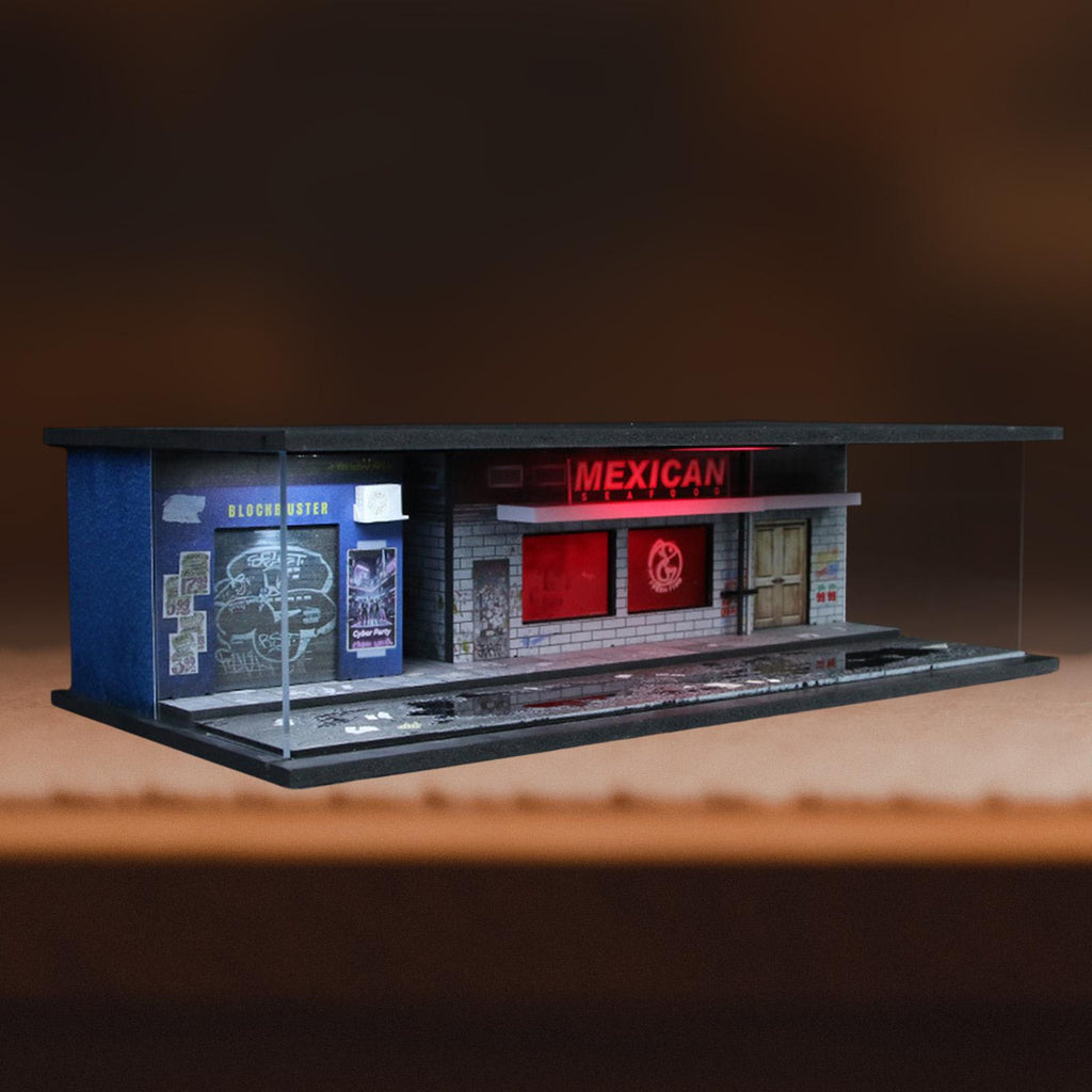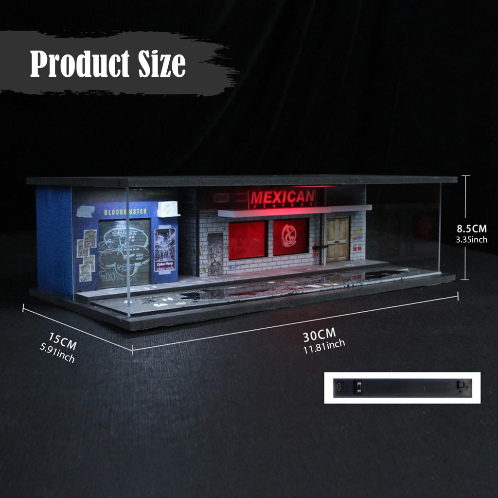 - 【Illuminated Display Case】: This 1/64 scale cyberpunk series parking lot display case features built in LED lights, enhancing the scene atmosphere and making your collection stand out