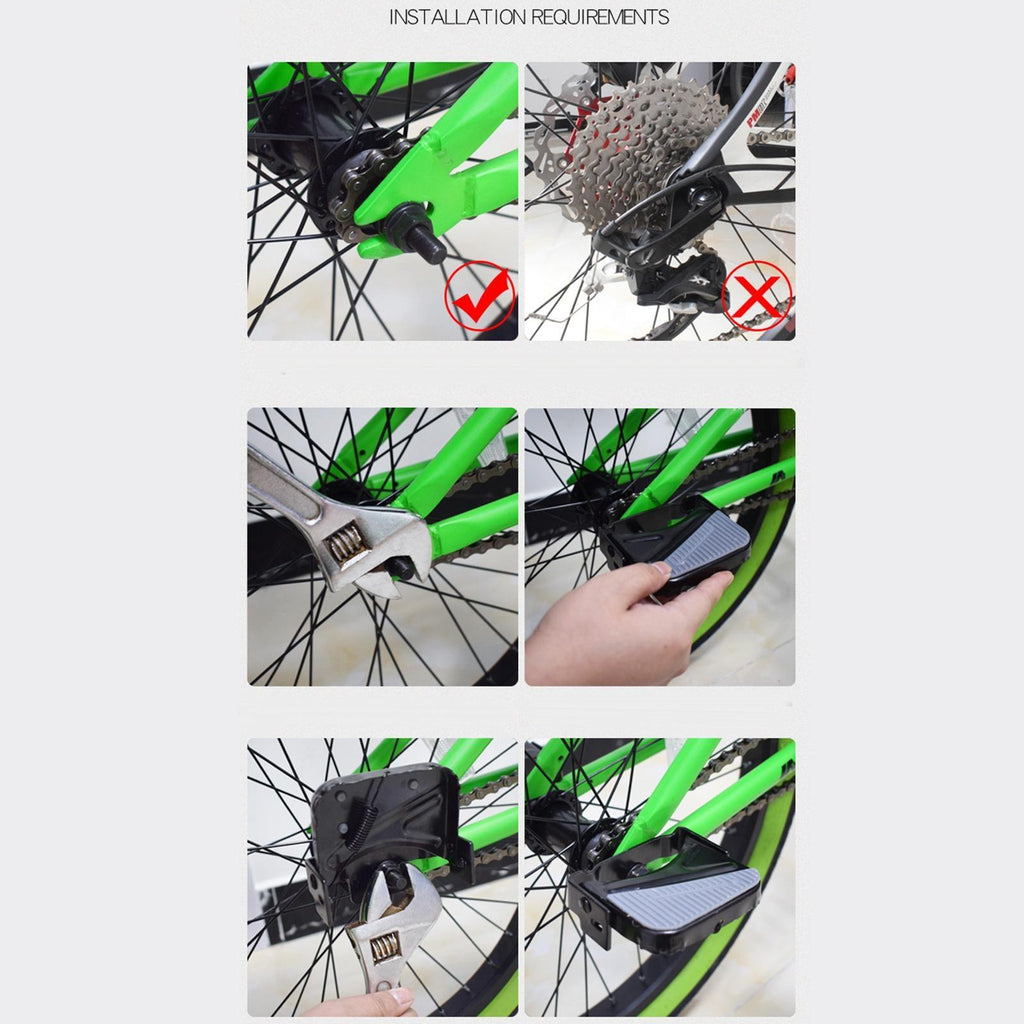 Bike foot pedals are suitable for electric car, mountain bike, scooter with rear wheel diameter within 1cm. A great accessory for bicycle.