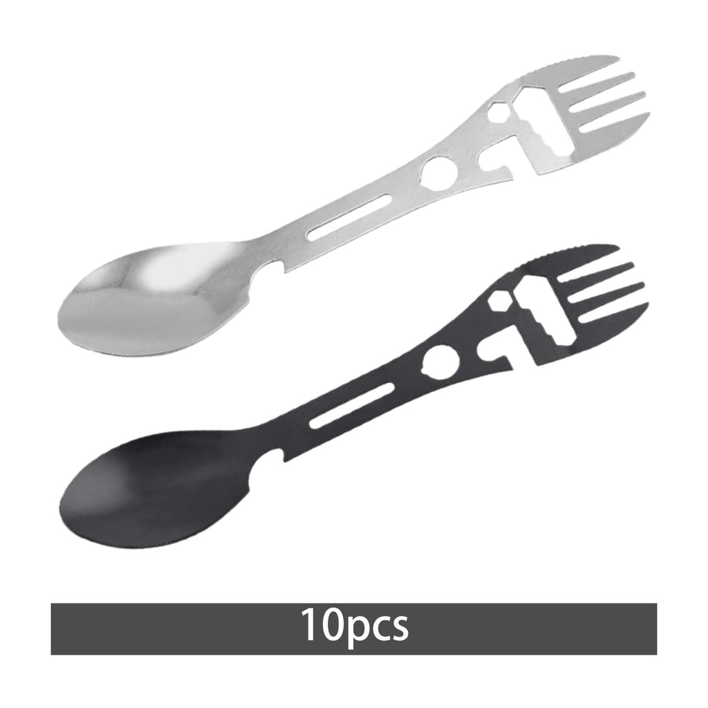 Maxbell 10 Pieces Multifunctional Camping Spork Fork Knife for Picnic Outdoor Hiking Silver