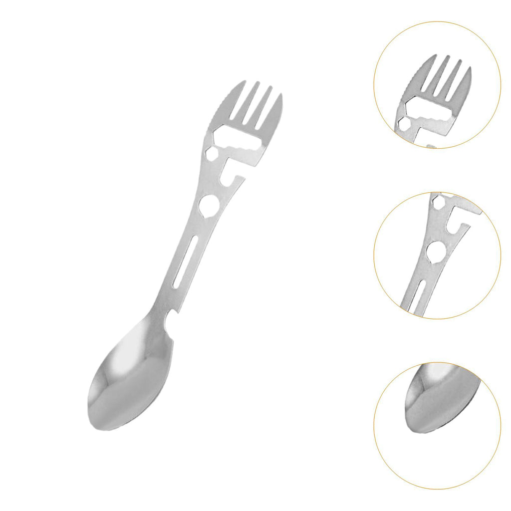 【10 in 1 Multifunction】: This Camping Spork combines 10 functions, including a spoon, fork, can opener, bottle opener, hex wrench, knife, direction indicator, and adjustable wrench, among others, wonderful for tackling various tasks during outdoor activities