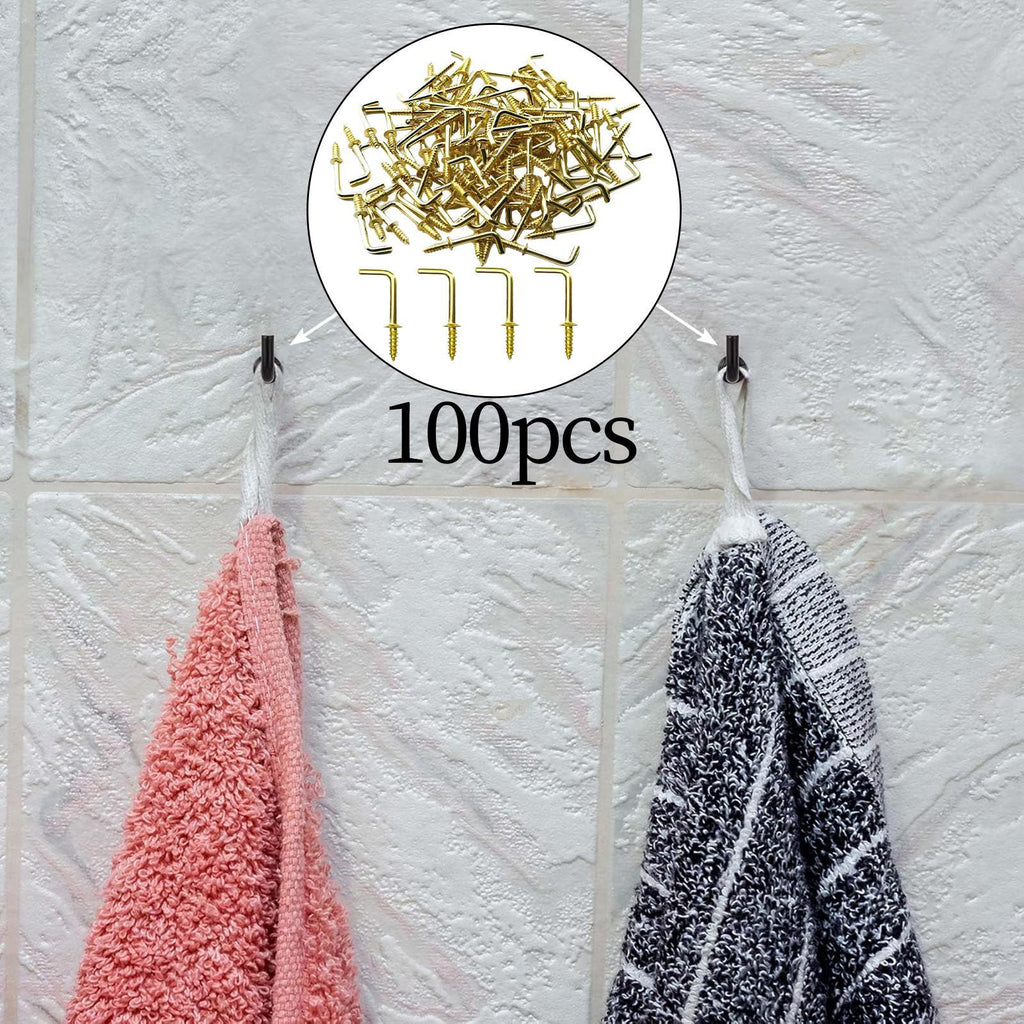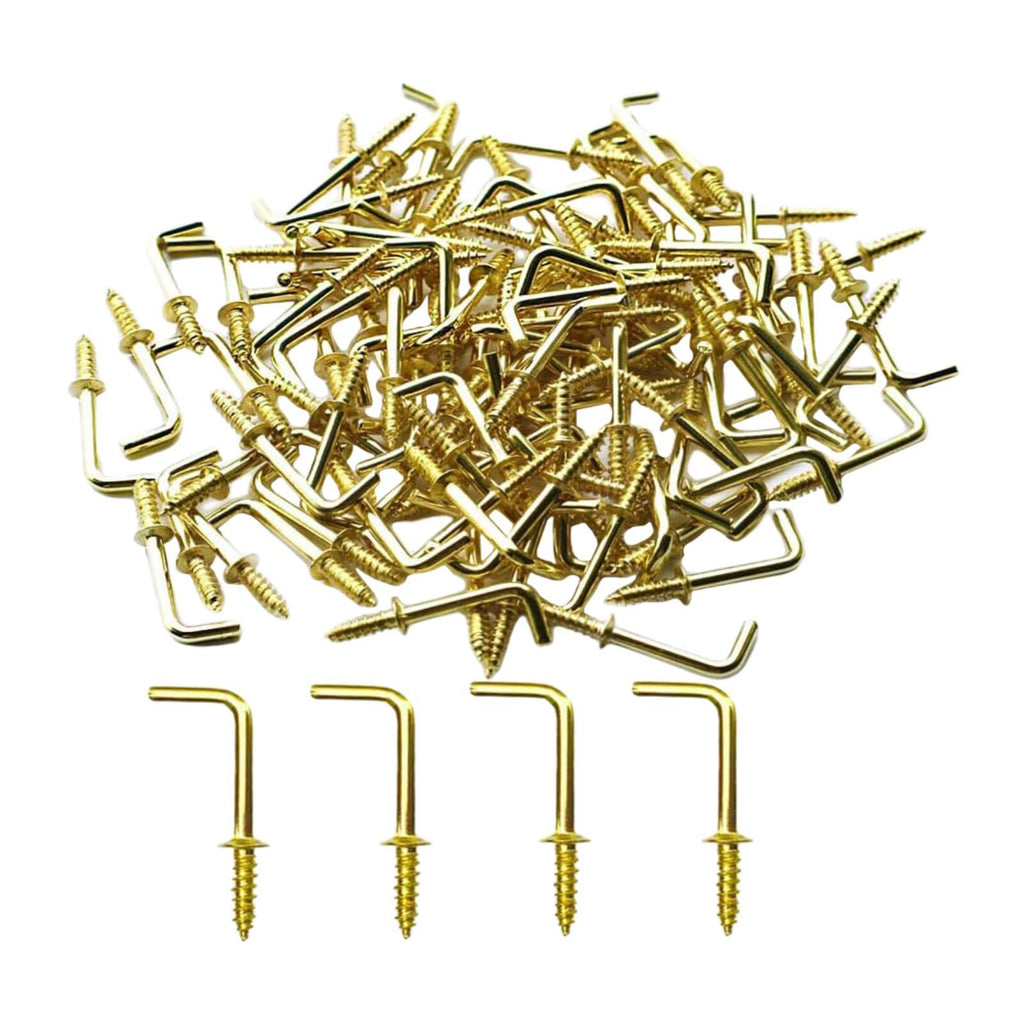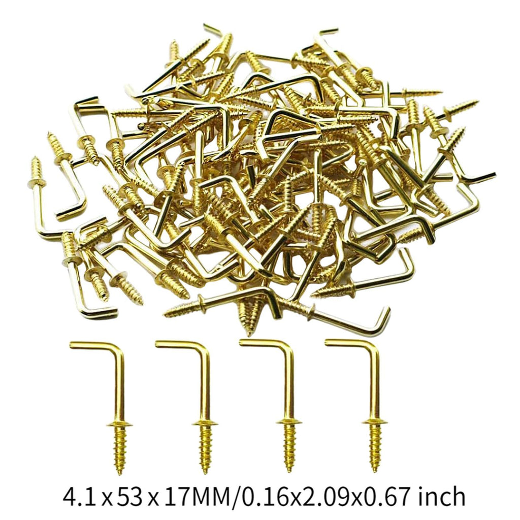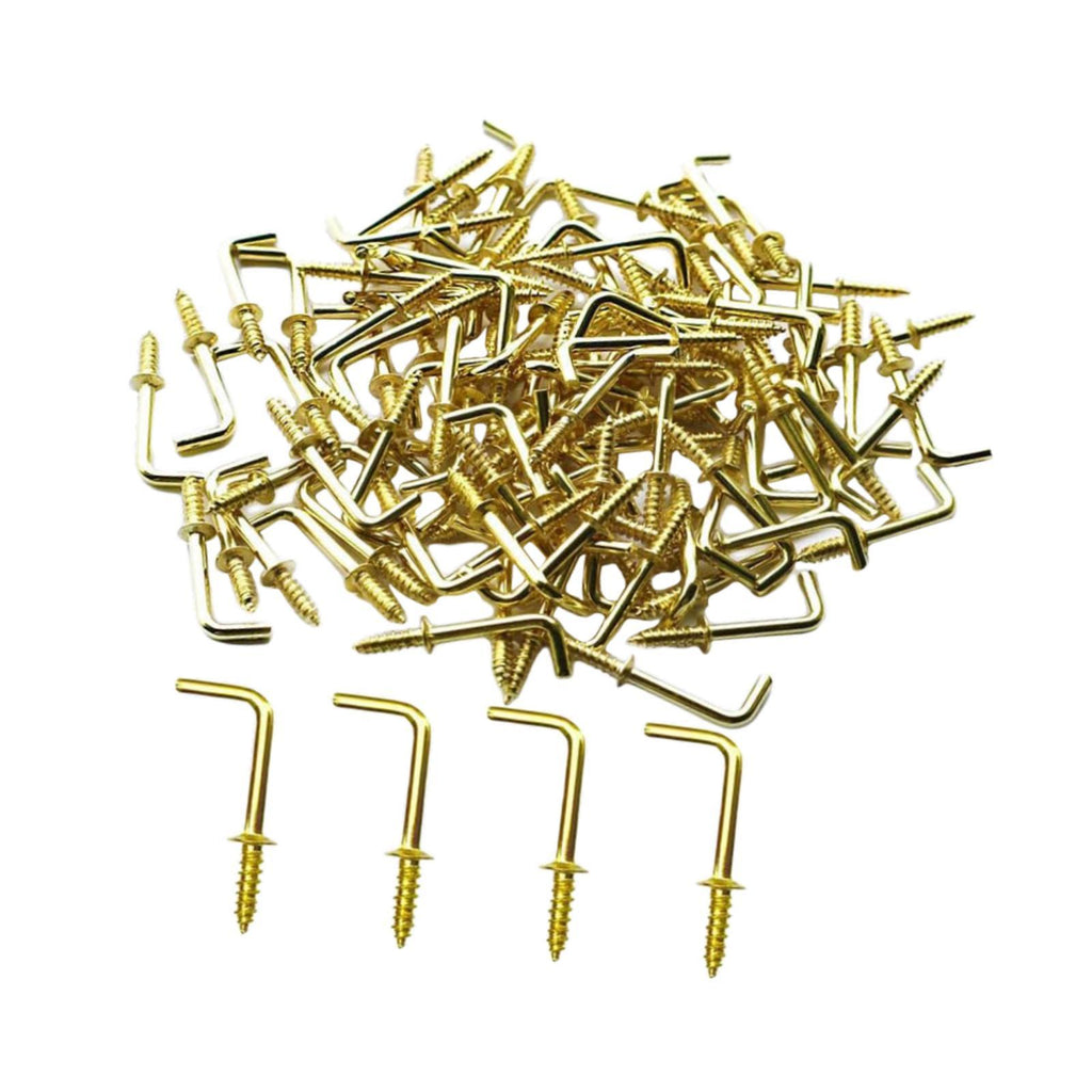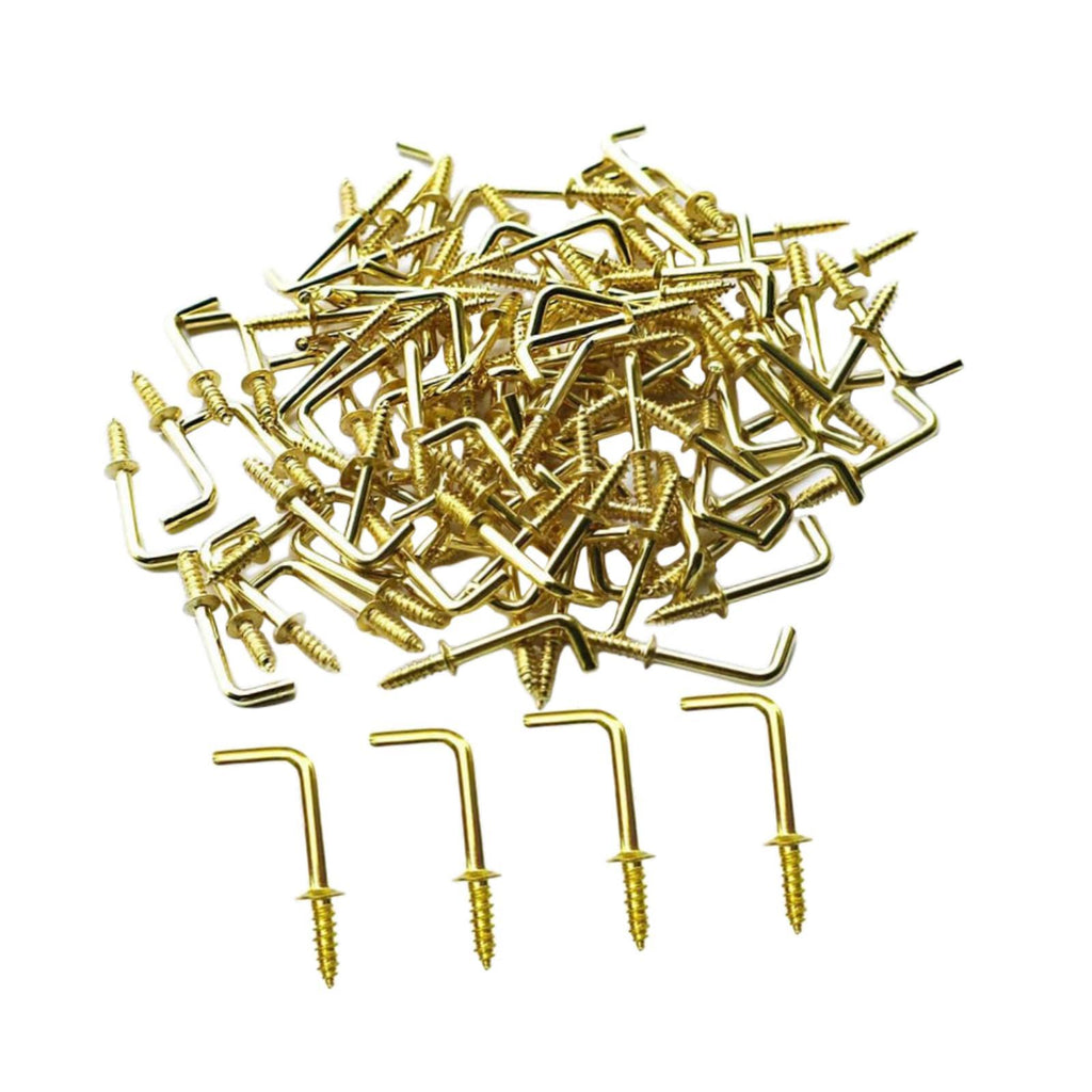 Maxbell 100x Right Angle Hooks Easy to Use Screw in Hooks for Hanging Outdoor Indoor 4.1mmx53mmx17mm