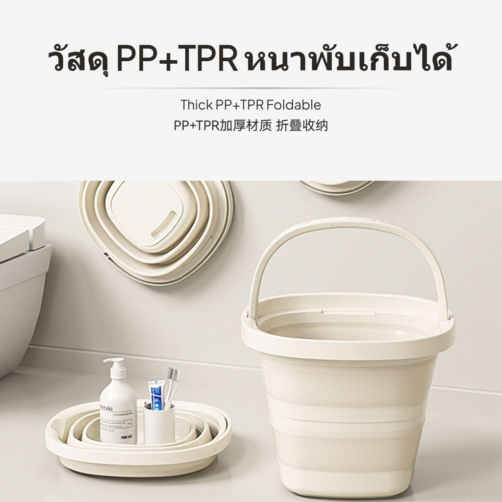【Versatile & Portable】10L folding bucket combines portability and multi-purpose use, ideal for home, dorm, car, outdoor, fishing, and travel scenarios.【Premium Material】Made of thickened PP+TPR, sturdy and durable, heat-resistant, odorless, suitable for foot soaking, washing, laundry, mopping, and car cleaning.【Space-Saving Foldable Design】Easily folds for compact storage, saving space and convenient to carry or hang in cabinets, gaps, or on hooks.【Ergonomic Handle & Spill-Proof Spout】Comfortable curved handle for easy grip, precise spout for controlled pouring and splash prevention.【Modern Color Options】Available in cream and gray, stylish and simple to fit various home environments and lifestyle needs.
