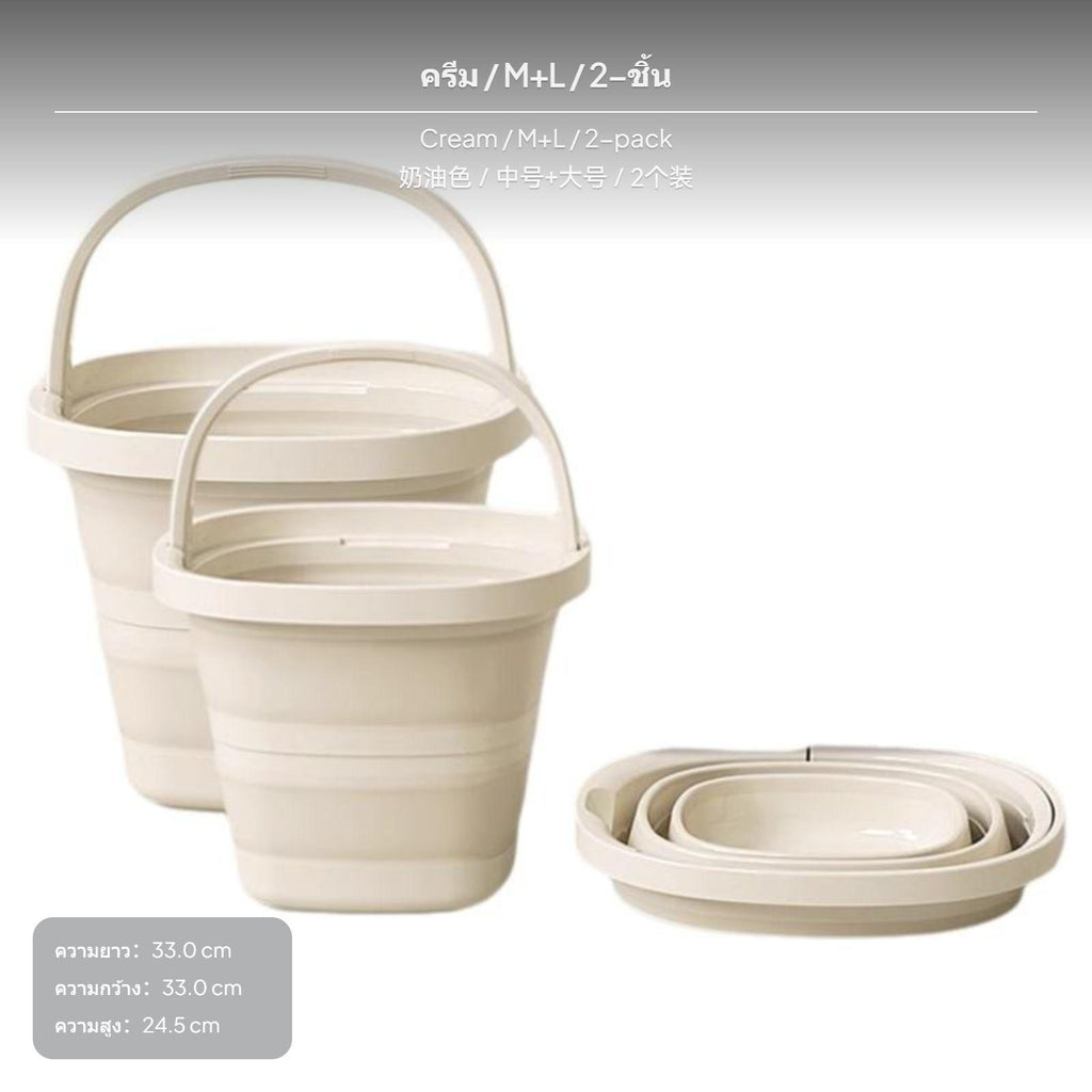 10L Folding Bucket, Portable Large Capacity, Multi-Purpose, Home & Outdoor Cream 5L+10L 2pcs