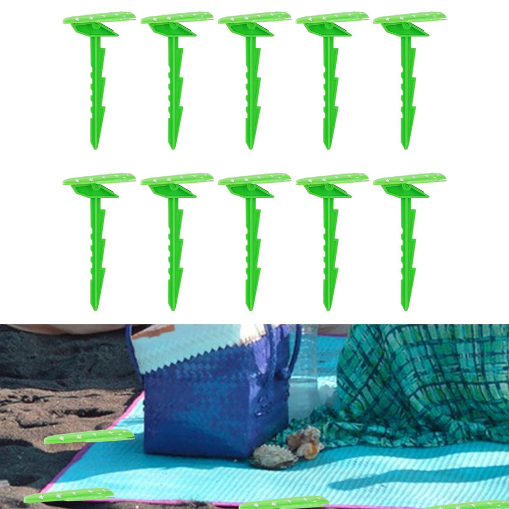 Package includes: Set includes 10 pieces picnic mat clips anchor stake clamps, sand spikes for towels, beach accessories stakes. Each clip measures 15.5 cm in length, lightweight yet strong enough to hold fabrics firmly without slipping