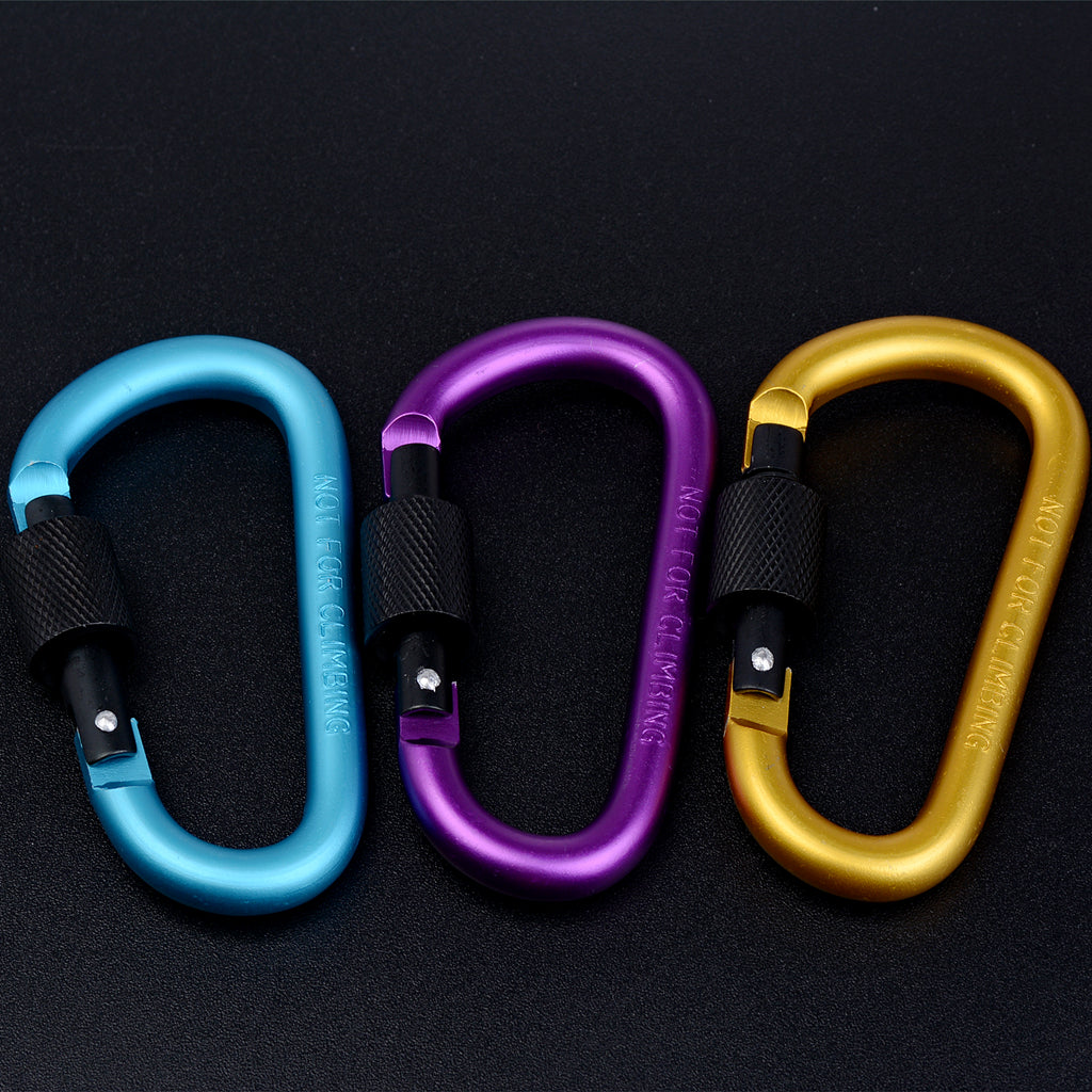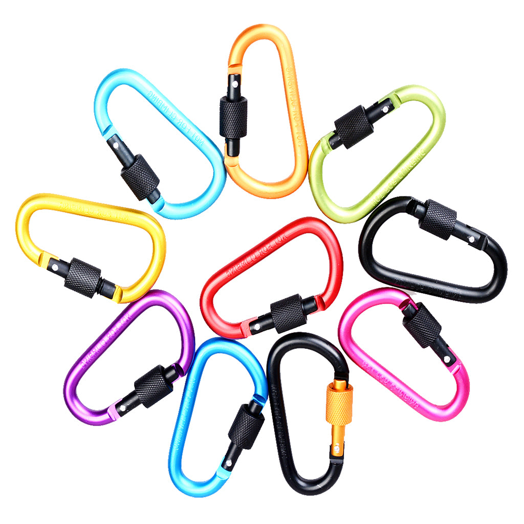 Maxbell 10Pieces D Ring Carabiner Screw Lock Climbing Buckle Snap Spring Clip Aluminum Alloy Hook Keychain for Camping Outdoor Activity