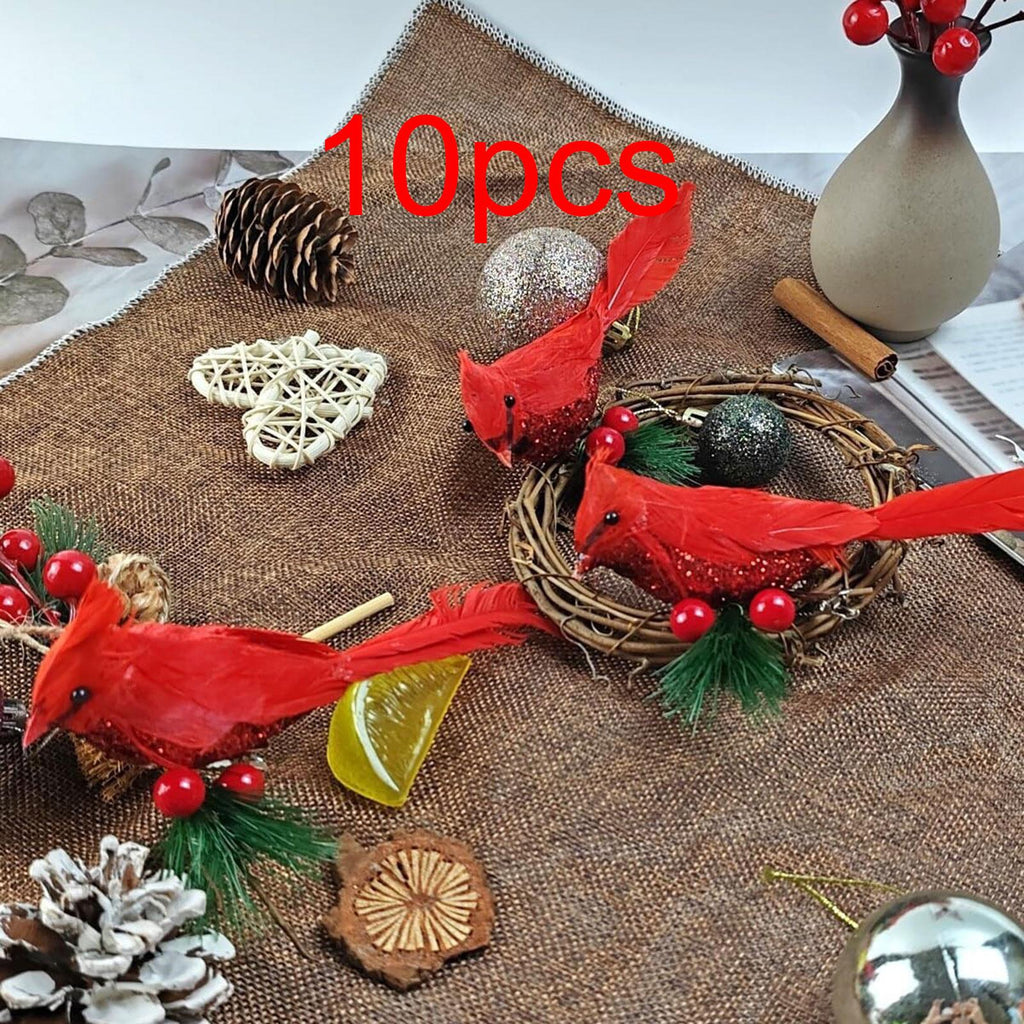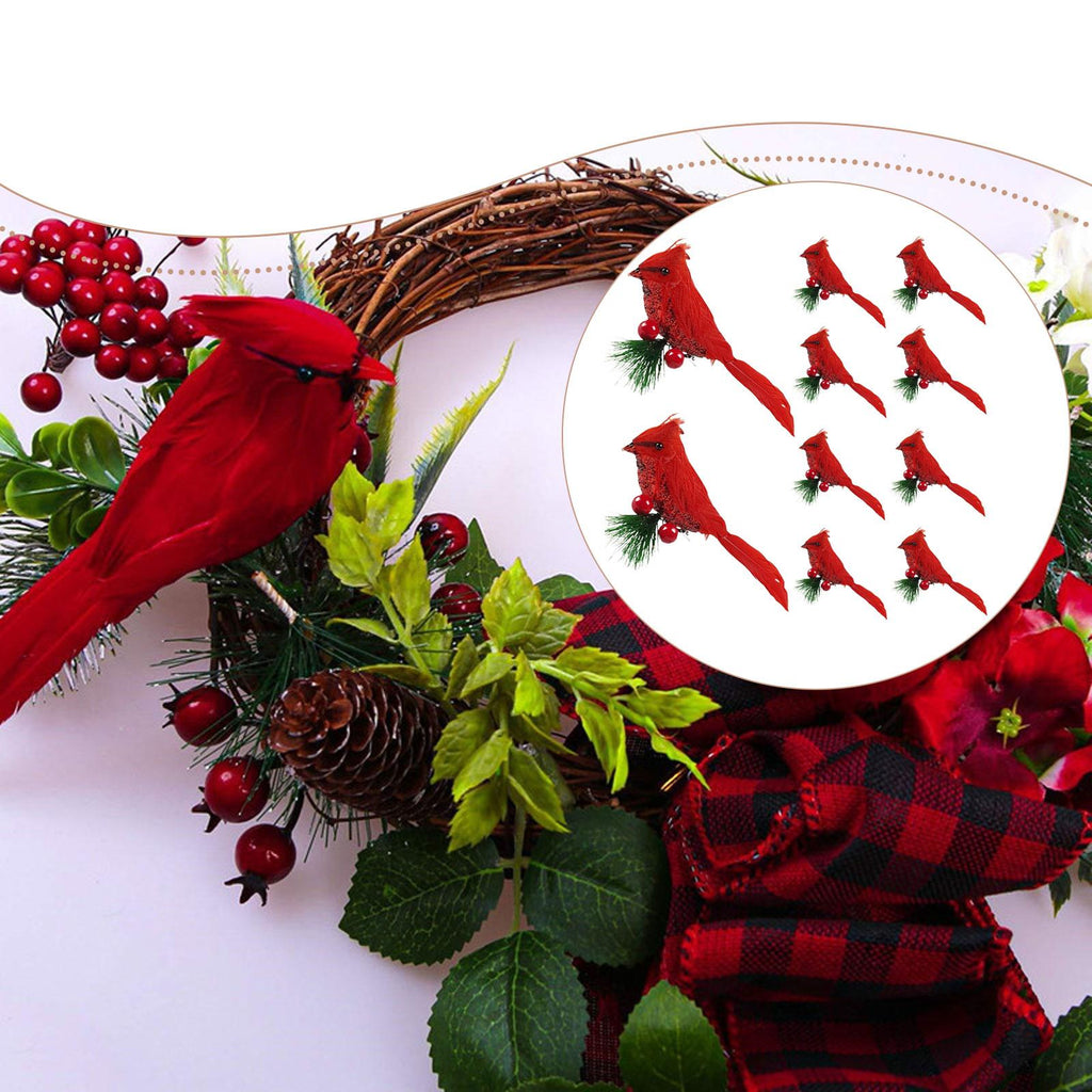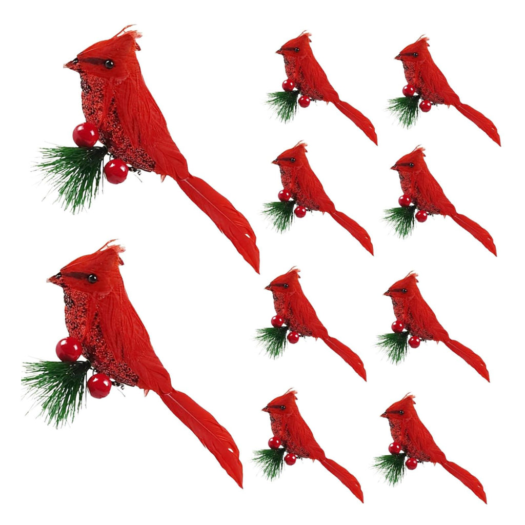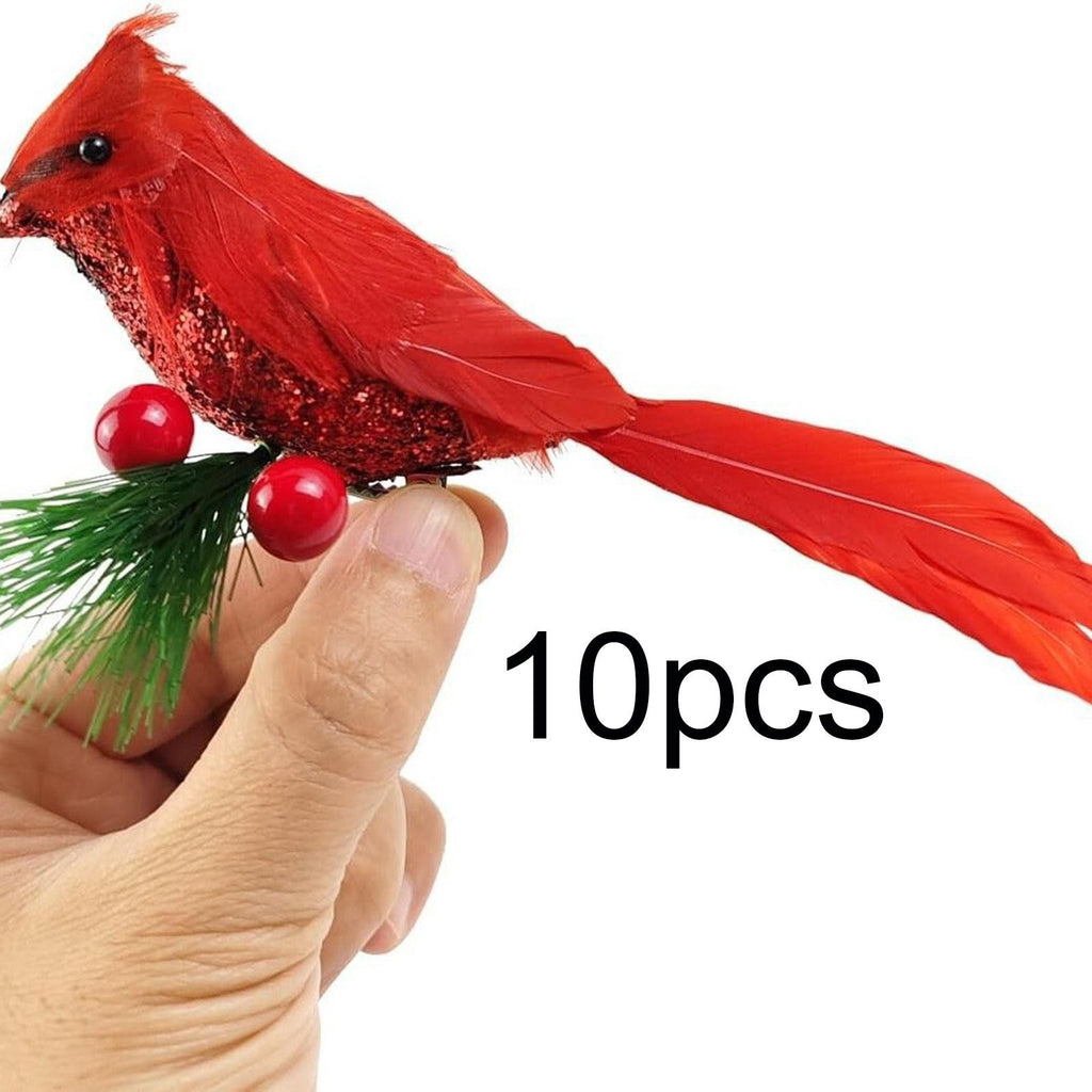 10x Artificial Christmas Red Red Birds with Clip for Outdoor Yard Patio