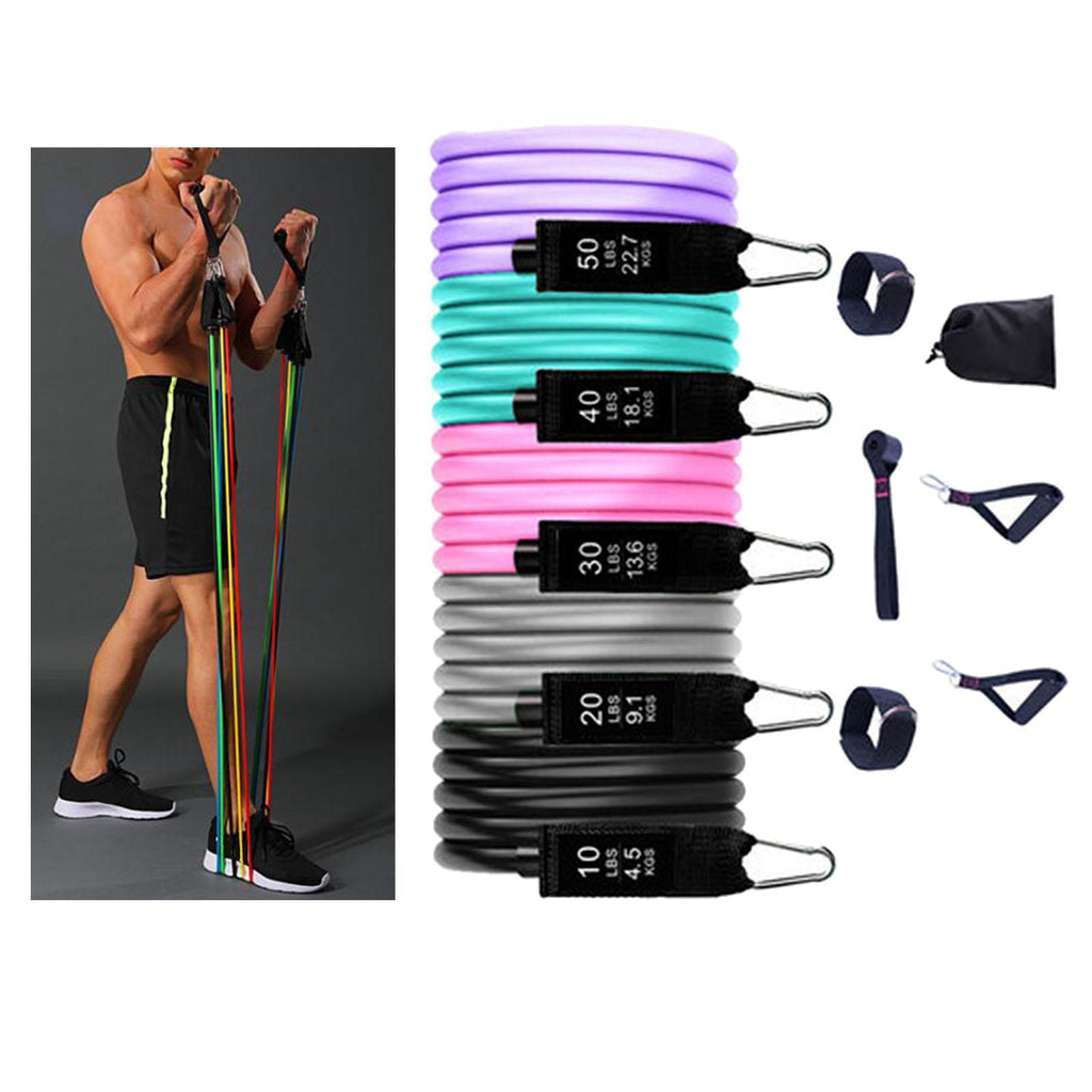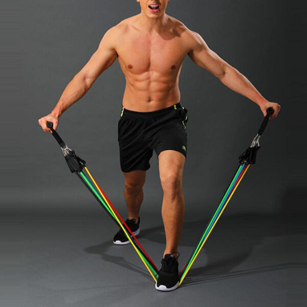 - Personal gym: The 5 resistance Bands with handle set is perfect for your full body workout, you can easily exercise your arms, shoulders, chest, abdominal muscle, glutes, legs etc.