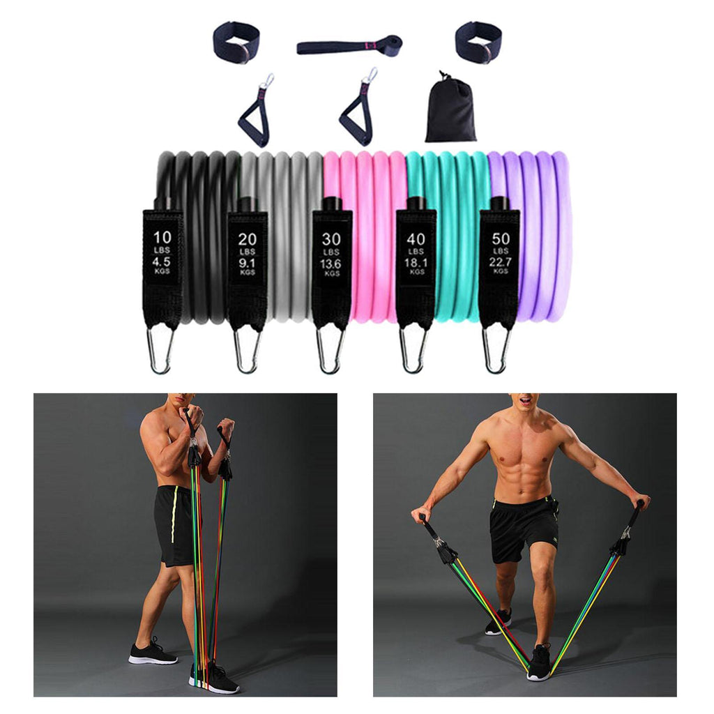 - Versatility, make fitness simple: 5 bands can be used alone or stacked in any combination of intensity from 10lbs to 110lbs. Each band is 47 inches in length and marked with its equivalent weight. You can choose different training methods for building strength.