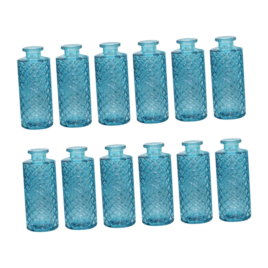 Maxbell 12Pcs Glass Bud Vases Mini Flower Vases for Indoor Outdoor Shelf Living Room Sky Blue