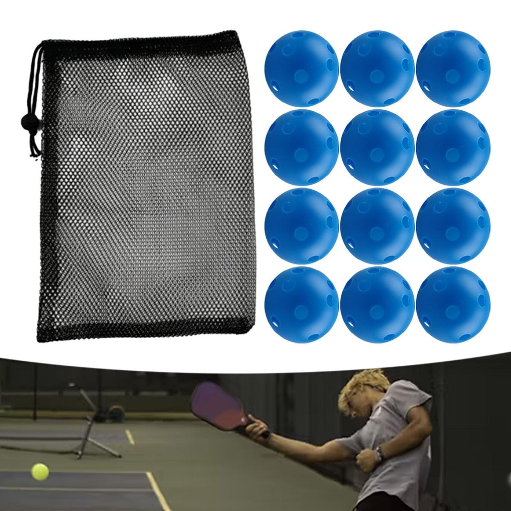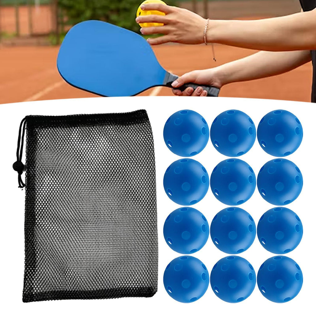 Maxbell 12Pcs Outdoor Pickleballs 26 Holes Portable with Storage Bag for Competition Blue