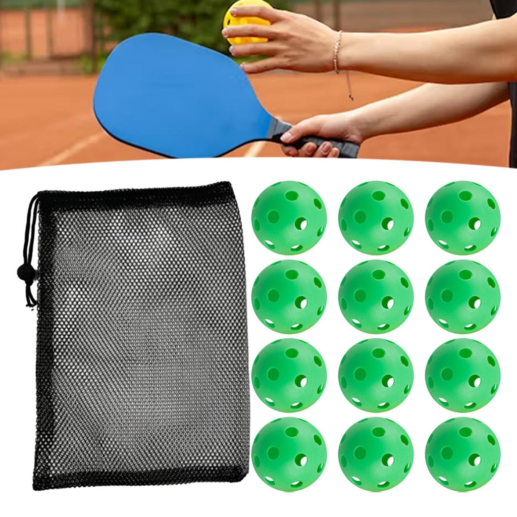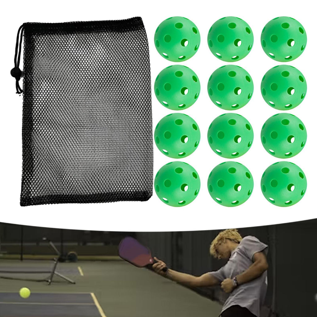 Maxbell 12Pcs Outdoor Pickleballs 26 Holes Portable with Storage Bag for Competition Green