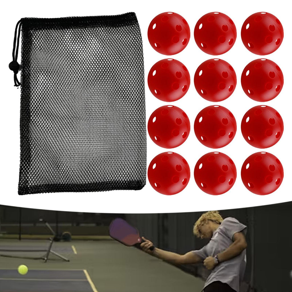 Maxbell 12Pcs Outdoor Pickleballs 26 Holes Portable with Storage Bag for Competition Red