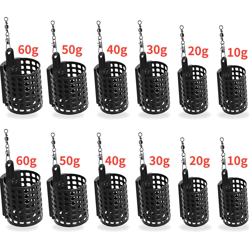 【Package】: 2pcs 10g fishing cage feeder, 2pcs 20g fishing cage feeder,2pcs 30g fishing cage feeder, 2pcs 40g fishing cage feeder, 2pcs 50g fishing cage feeder, 2pcs 60g fishing cage feeder