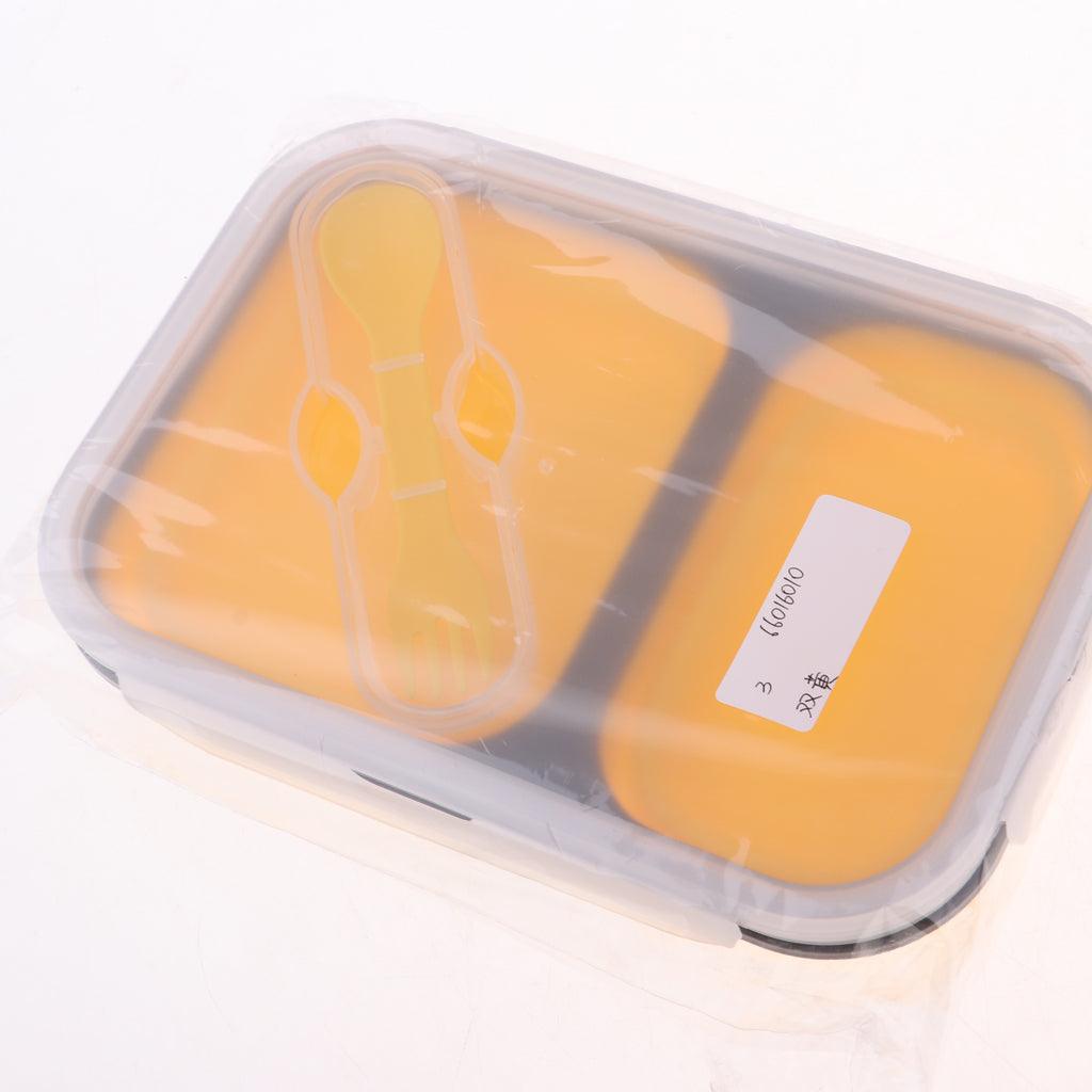 Maxbell Maxbell 2/3 Comparment Reusable Silicone Bento Lunch Box for Camping Travel Picnic 2 Grid Yellow