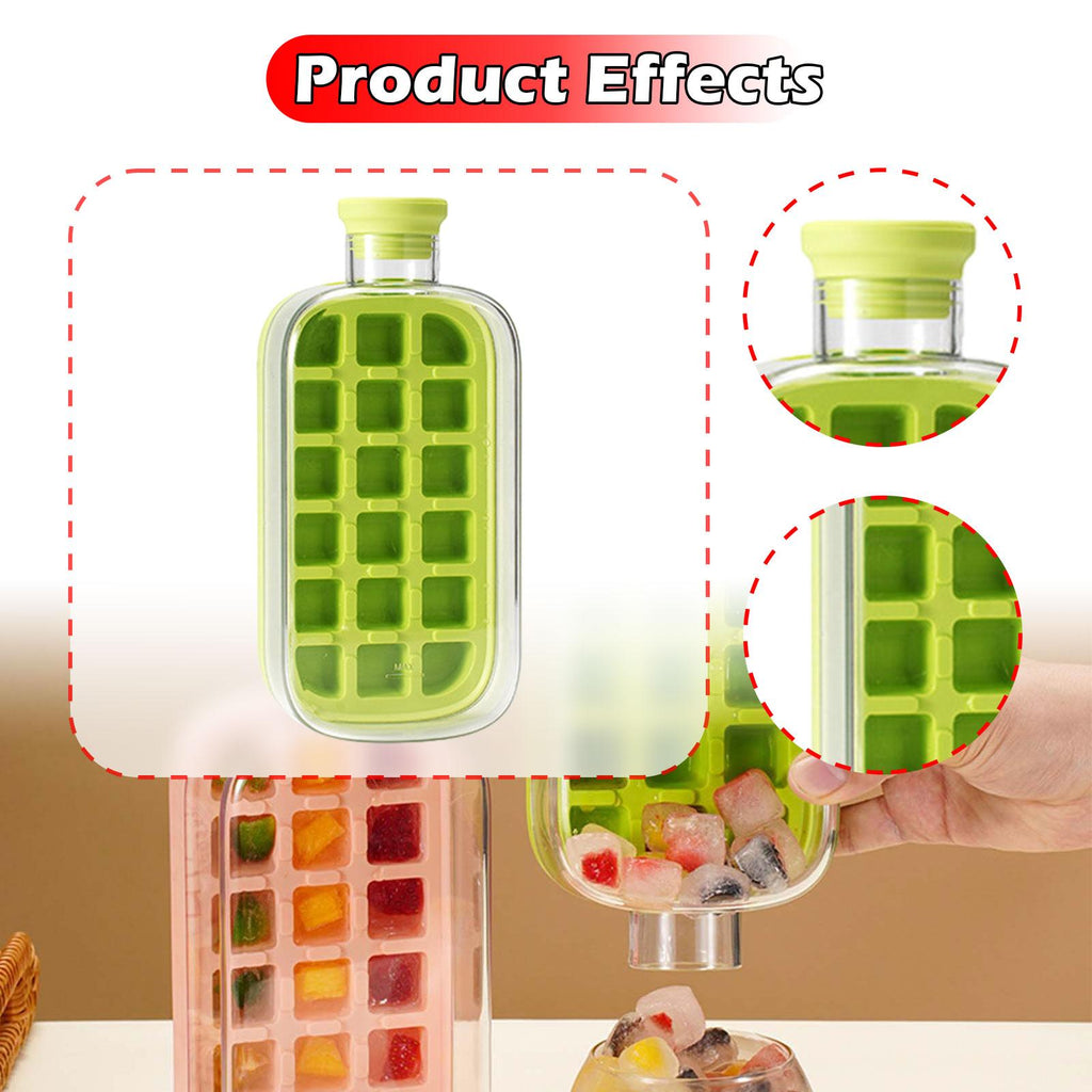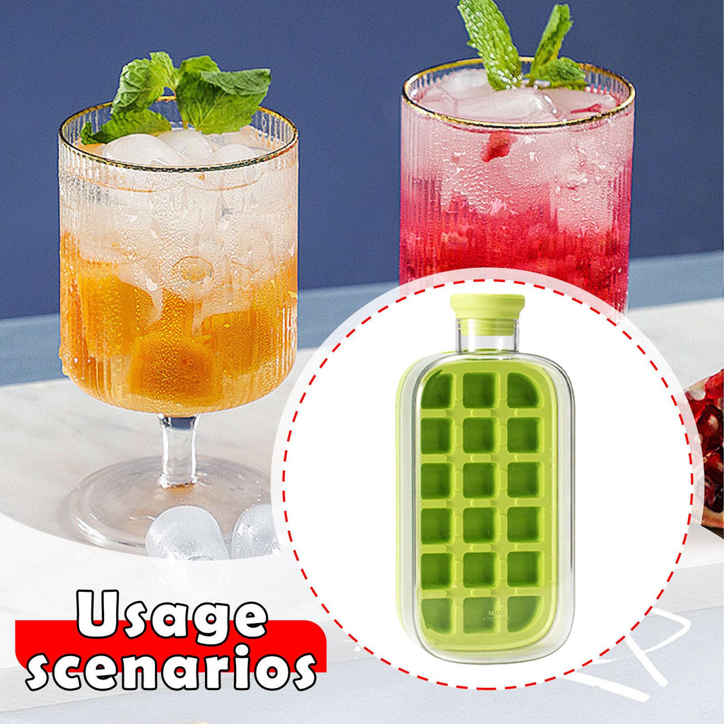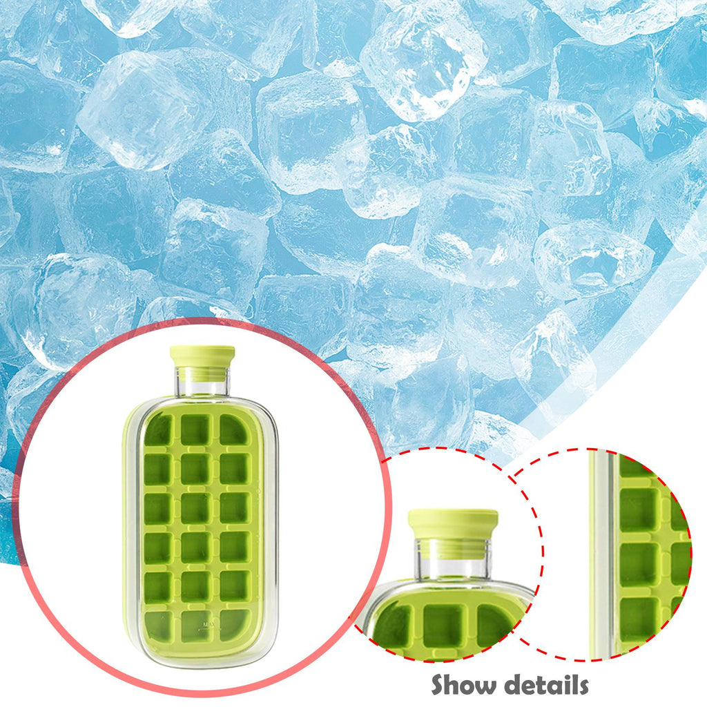 【Material】: Outdoor Ice Cube Tray is made of PP, PET, TPE, Silicone and ABS material to ensure the durability of the ice tray and is suitable for long term use【With lid design】: 2 In 1 Ice Cube Bottle adopts a lid design, no need to open the lid to add water, lightly press to remove ice, easy to use