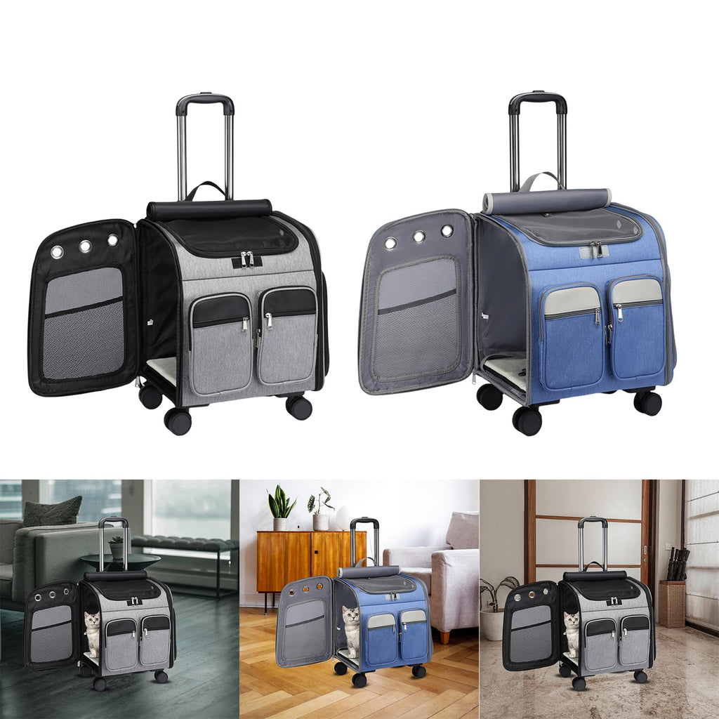 Pet Carrier with Wheels Size: approx 41cmx30cmx43cm/16.14inchx11.81inchx16.93inch, for Cats under 15kg