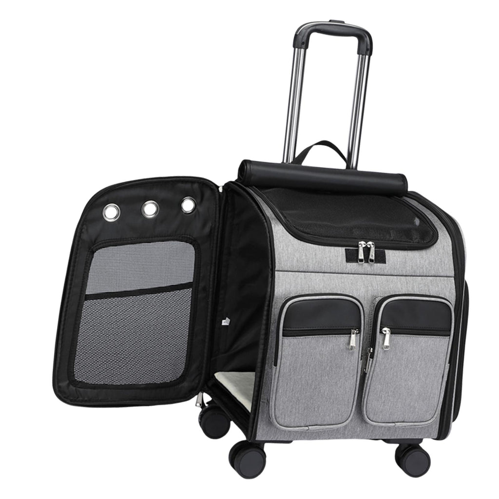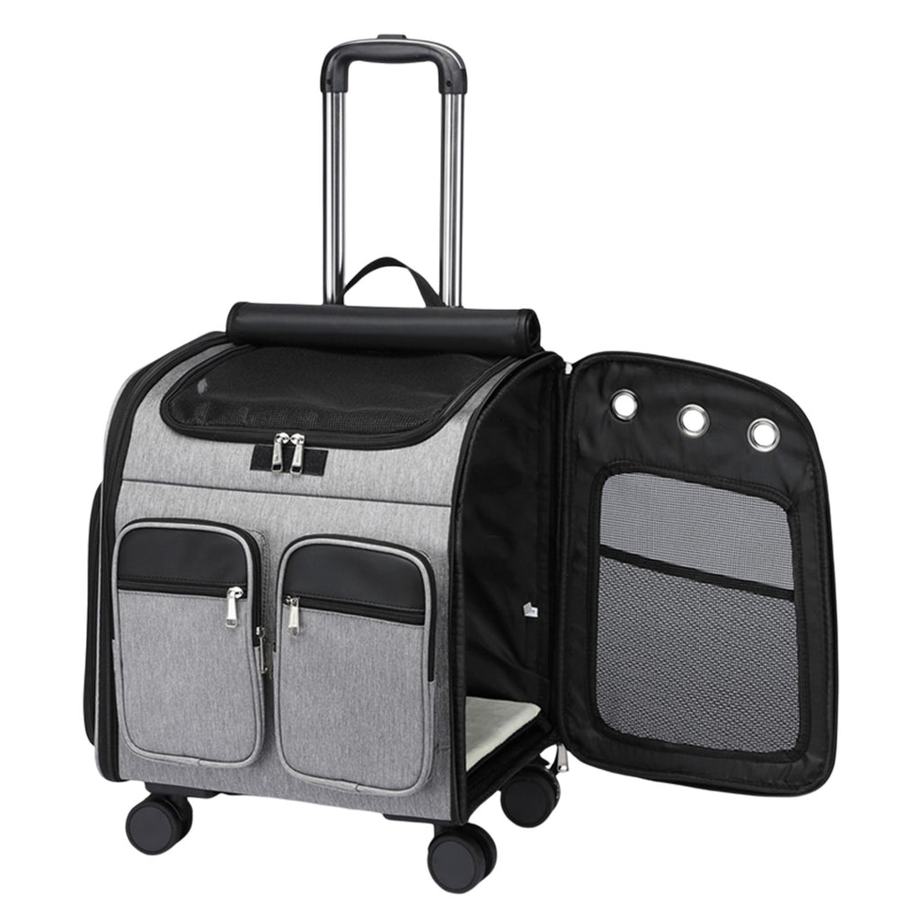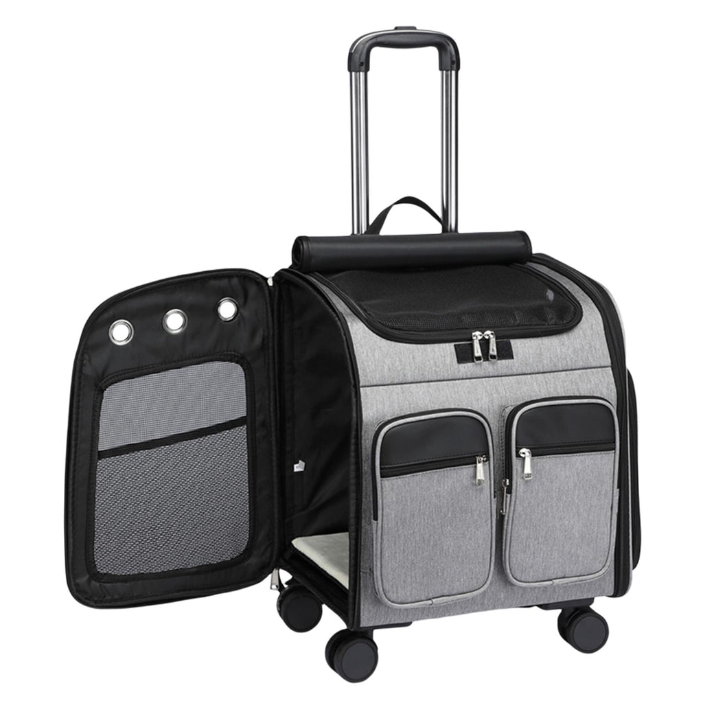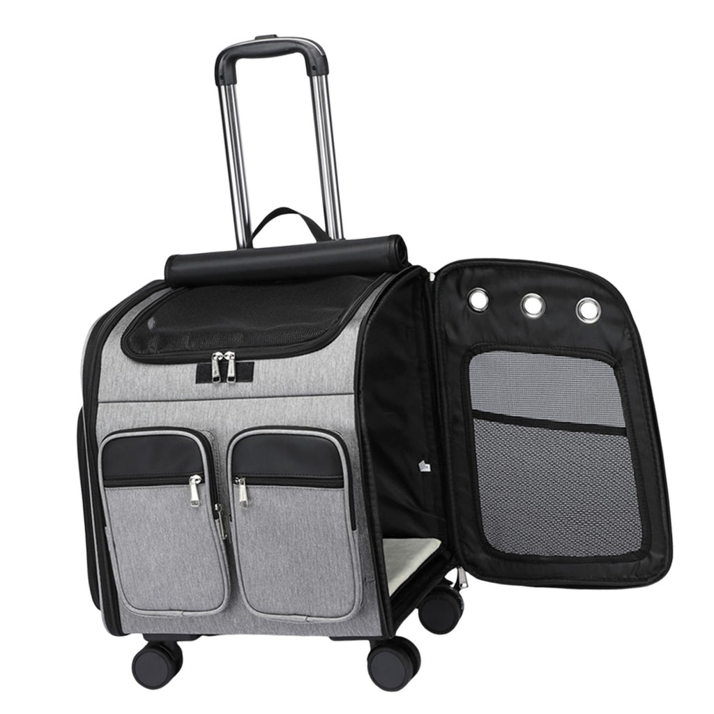 Maxbell 2 in 1 Wheeled Cat Rolling Carrier Backpack Travel Use Comfortable Sturdy Grey