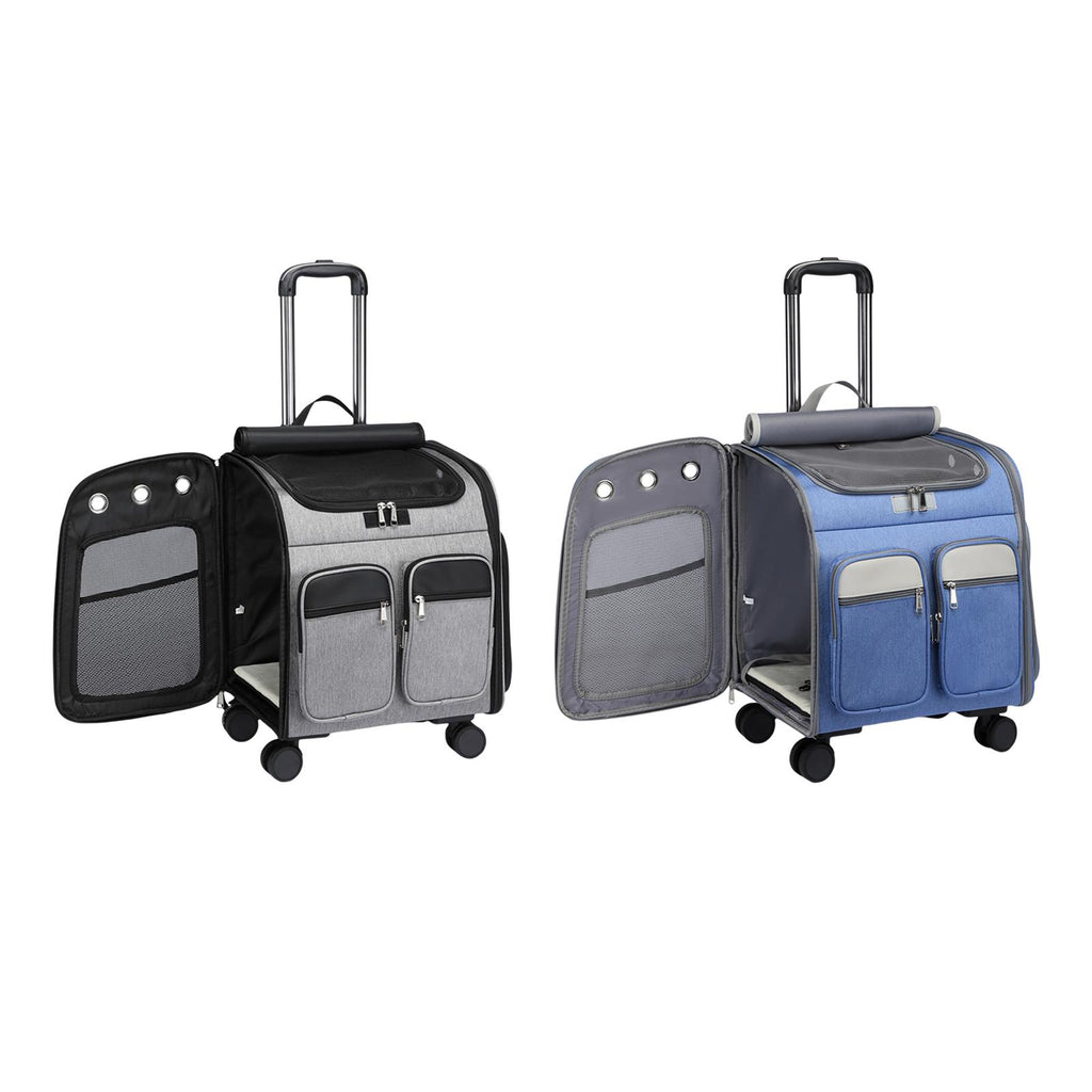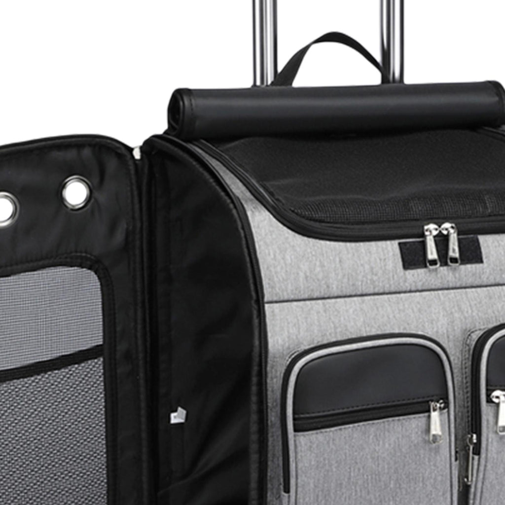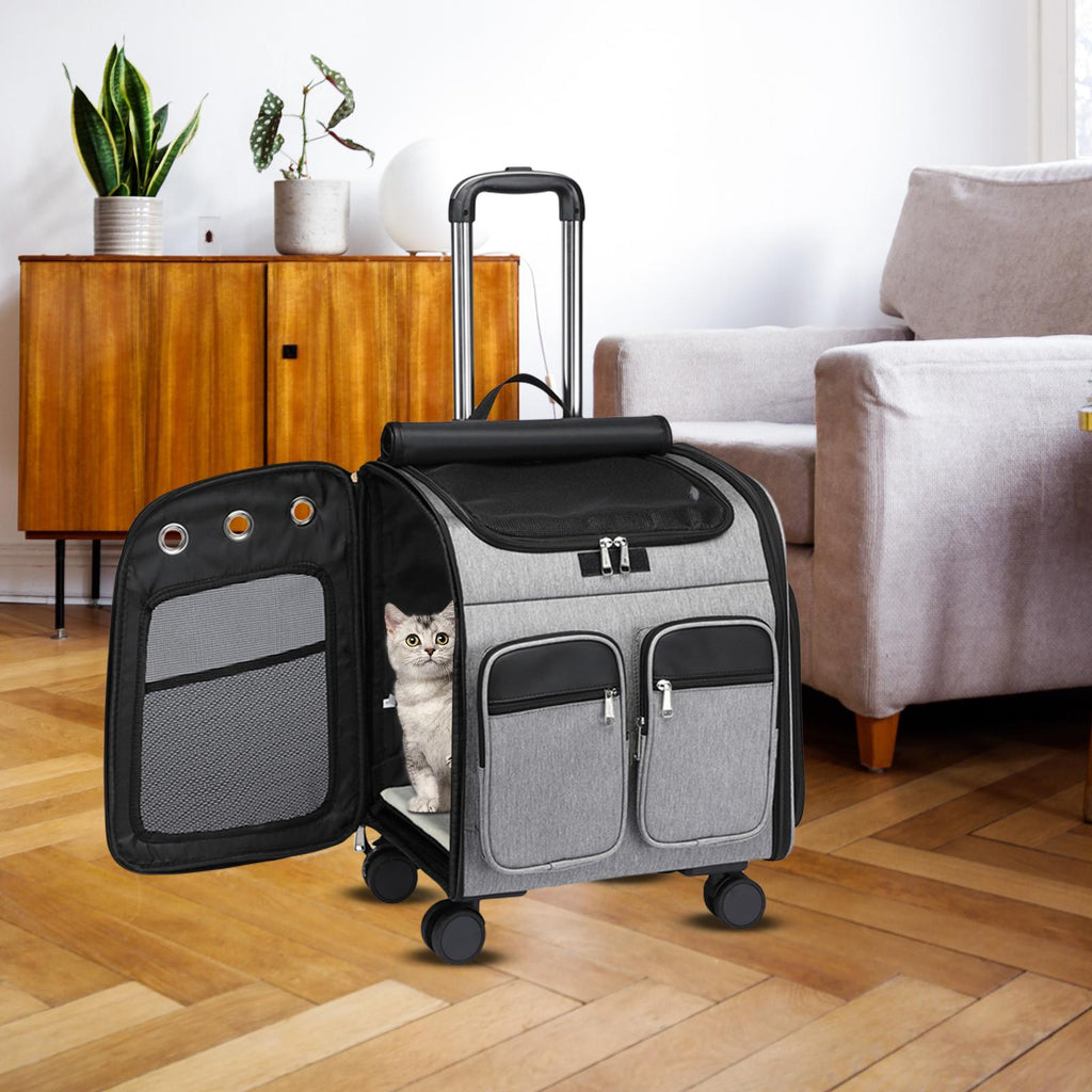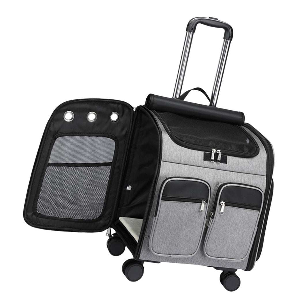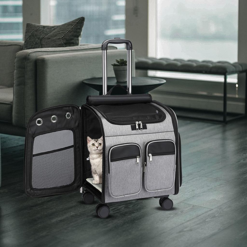 Maxbell 2 in 1 Wheeled Cat Rolling Carrier Backpack Travel Use Comfortable Sturdy Grey