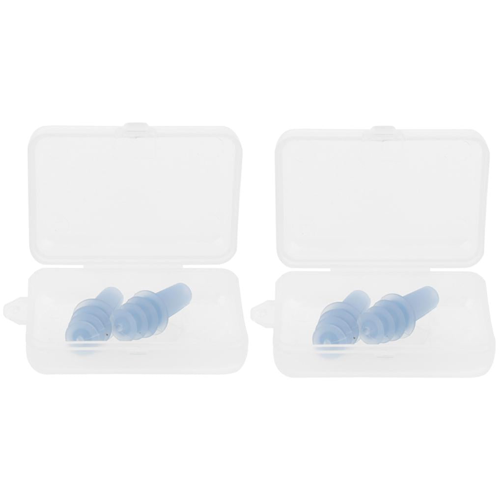 Max 2 Pairs Reusable Silicone Earplugs for Airplane Travel Sleep Silence Blue