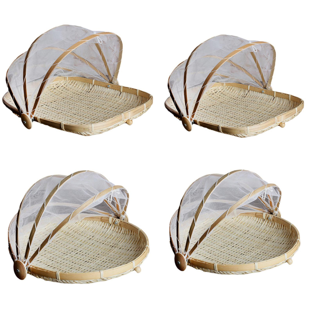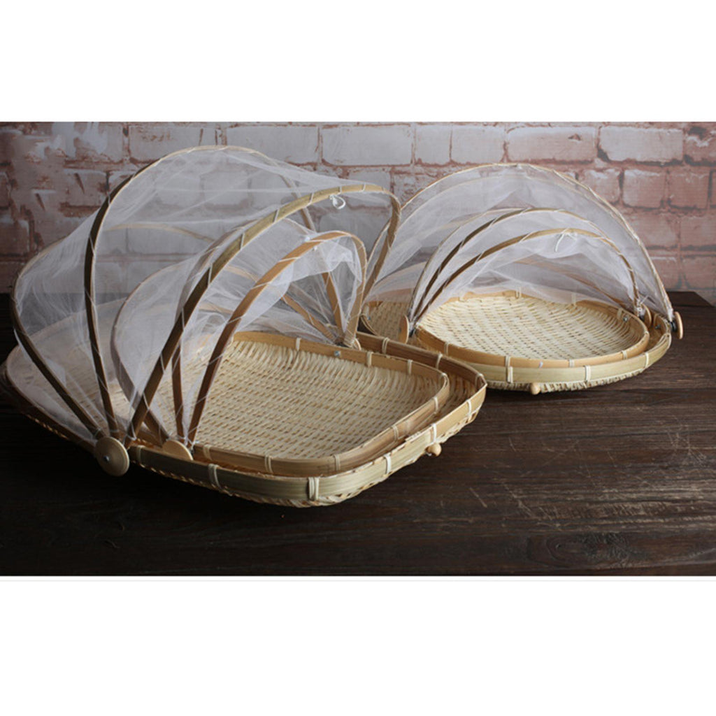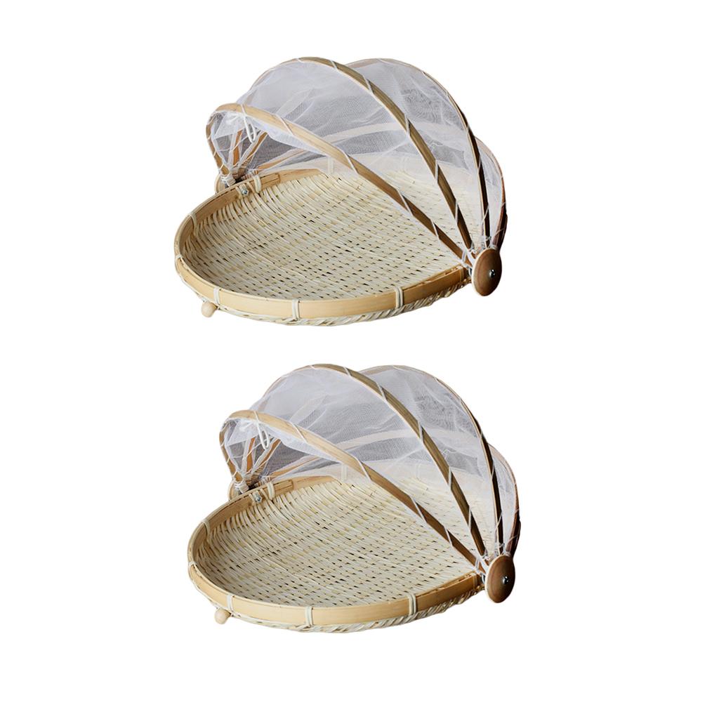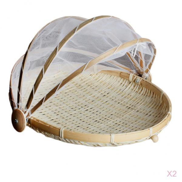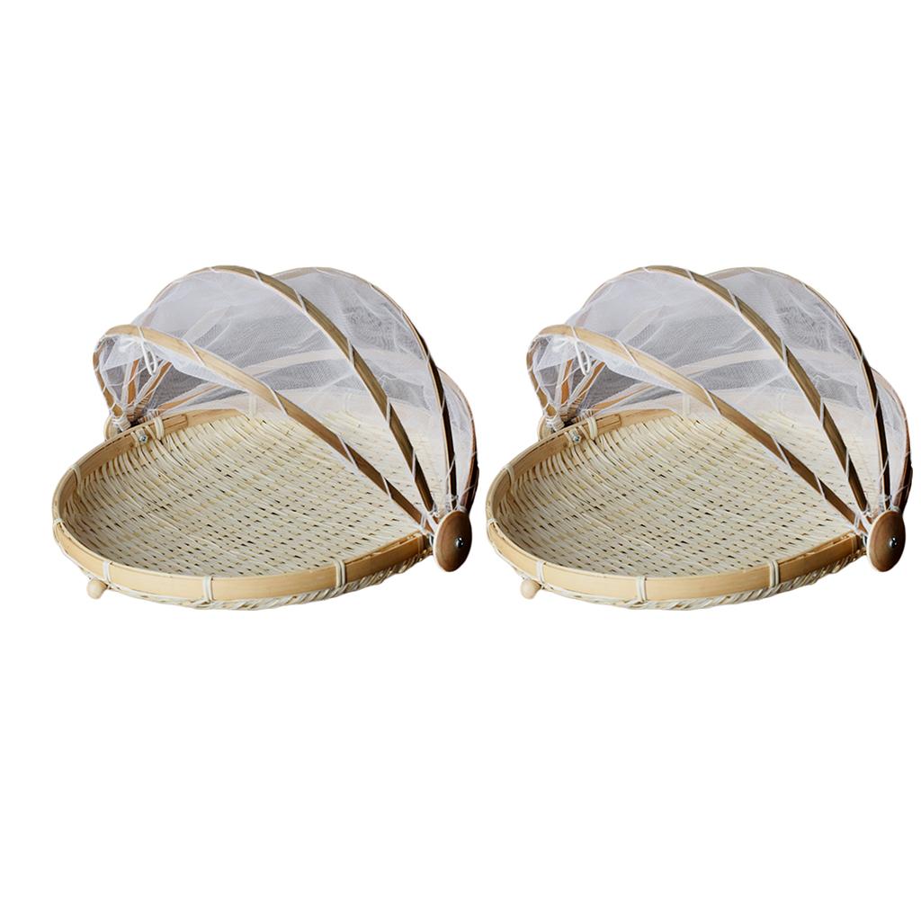 Maxbell 2 Pcs Bamboo Tent Basket Serving Food Outdoor Picnic Pop Up Round_S