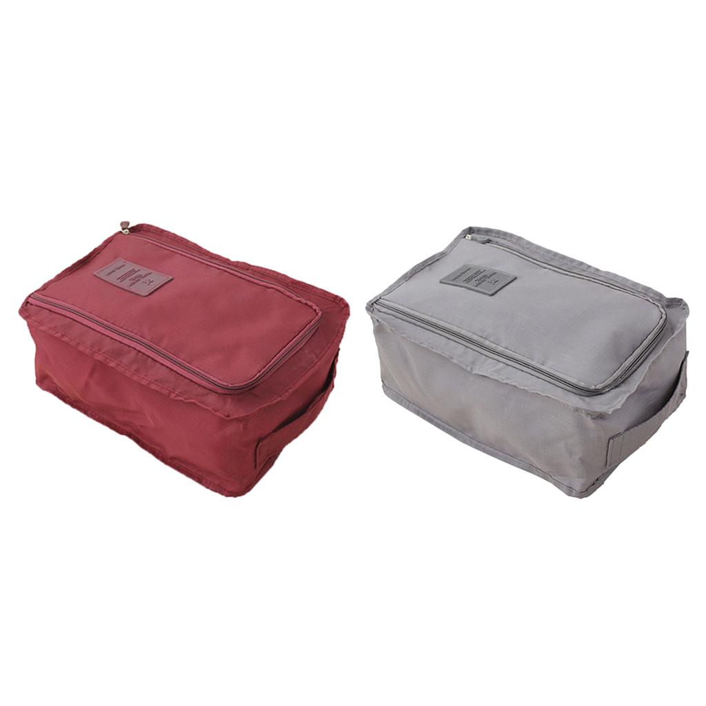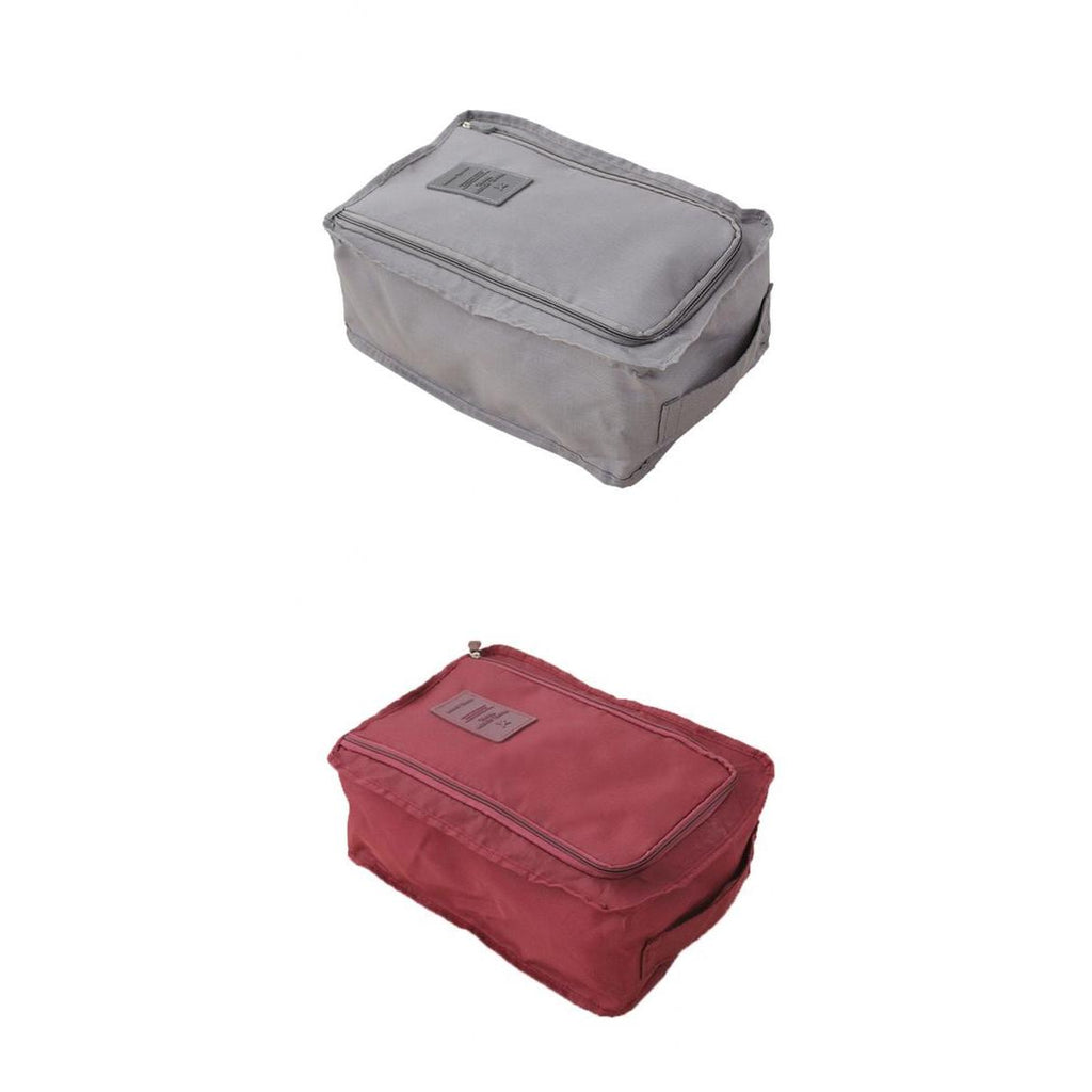 Maxbell 2 Pcs Household Travel Portable Shoe Organizer Nylon Zip Bag Grey & Wine Red
