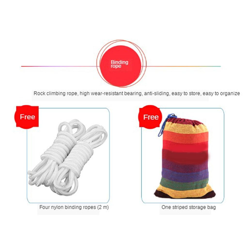 Beautiful color stripes –rainbow color bringing you a good mood.Relax at home, in your backyard, in the outdoors or anywhere you please with Portable Hammock with Carrying Case