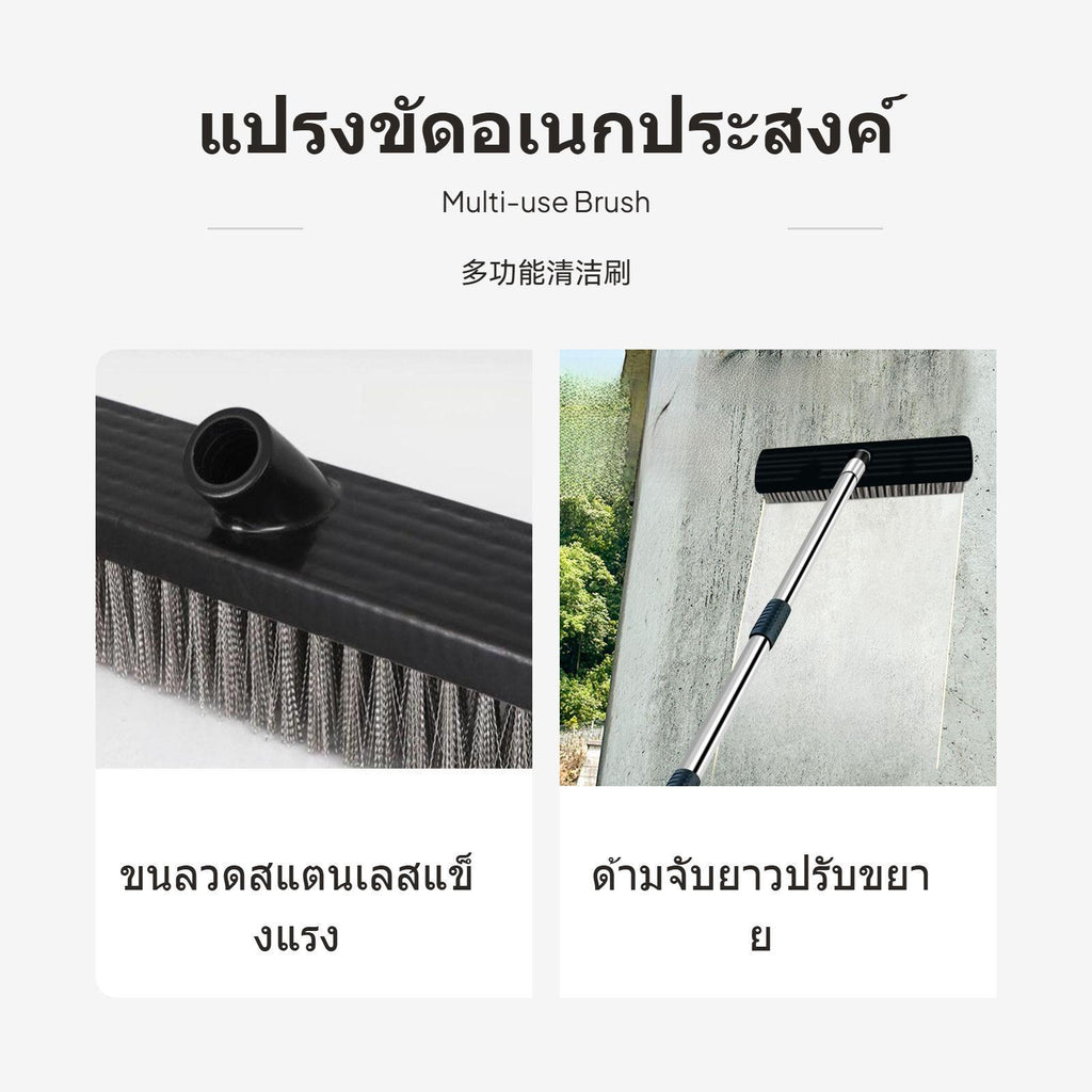 【Efficient Deep Cleaning】This stainless steel wire brush features a thickened, rust-resistant head and adjustable long handle, making it perfect for removing stubborn dirt, moss, and oil from outdoor surfaces.【adaptable Application】Perfect for cleaning walls, floors, patios, cement, and garden areas, this sturdyduty scrubber adapts to various cleaning scenarios with ease.【sturdy Adjustable Design】Equipped with a telescopic stainless steel pole (1.78m to 3.9m), the brush offers flexible length adjustment for high or hard-to-reach places.【Userergonomic Features】The anti-slip grip, interchangeable threaded connection, and reinforced detachable construction ensure comfortable handling and easy assembly.【Quality Materials】Made from PP base, stainless steel rod, and steel wire bristles, this brush delivers longenduring effectiveness for commercial and home use.Specification: