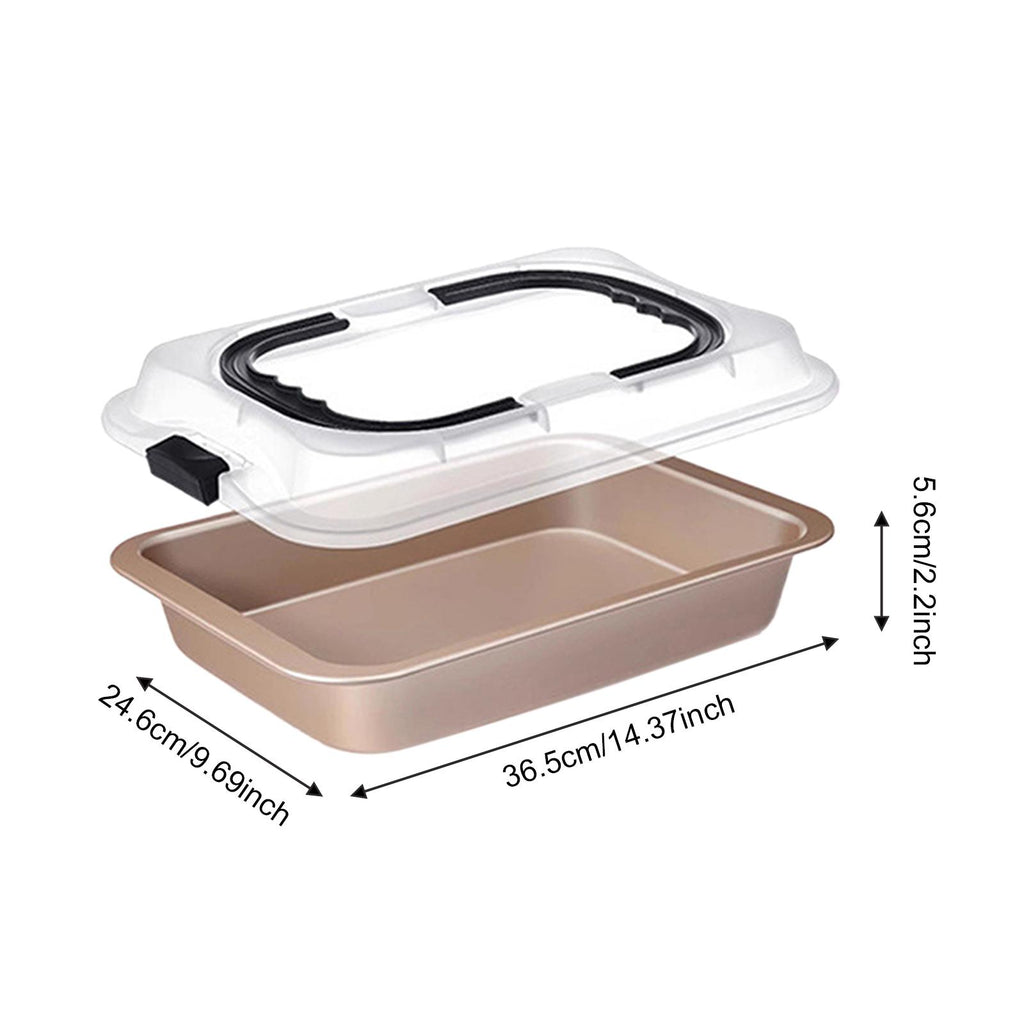 - 【Large Capacity】: Sheet Cake Pan Carrier measures 36.5cmx24.6cmx5.6cm/14.37inchx9.69inchx2.20inch, offering ample space for a variety of dishes. Perfect for family sized pancakes, fudgy brownies, delicious casseroles, and roasted vegetables, it's an essential all in 1 tool for everyday baking and cooking