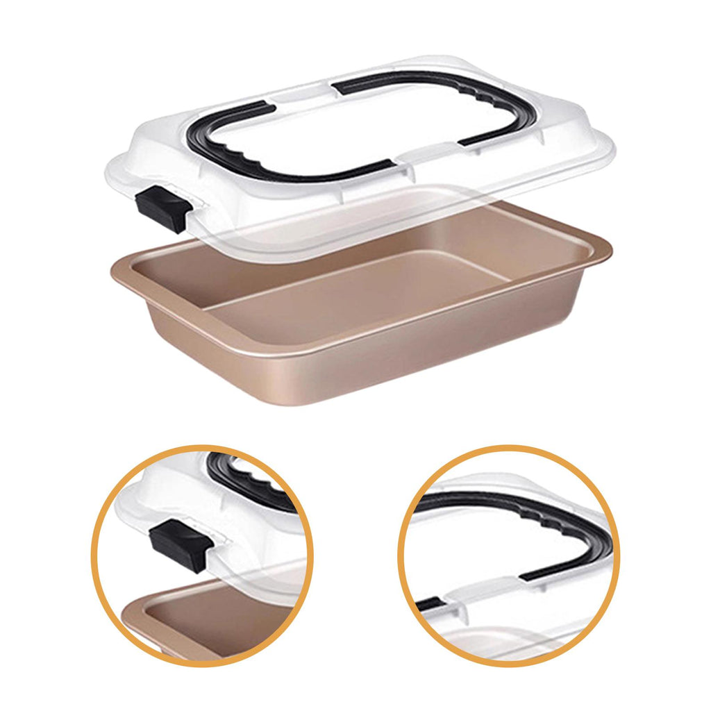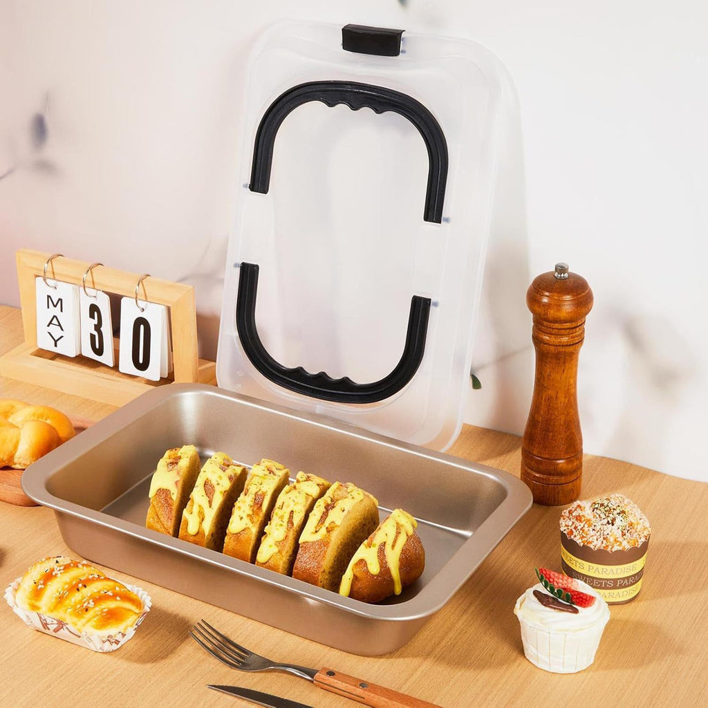 - 【Easy to Carry Lid and Handle】: Baking Pan features a clear lid that snaps on to protect your creations during transport and keep them fresh. Sturdy, easy grip handles provide a secure grip when transferring hot dishes from the oven to a cooling rack