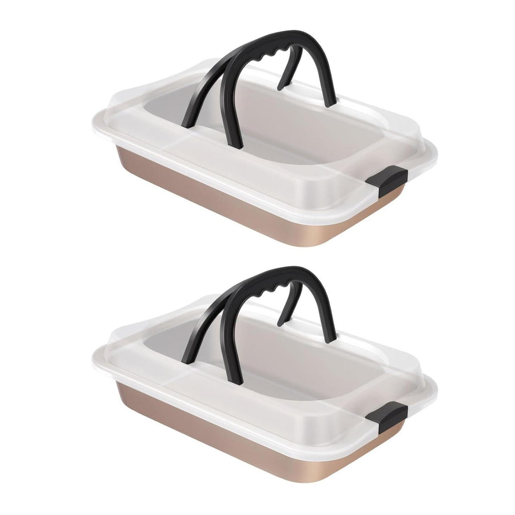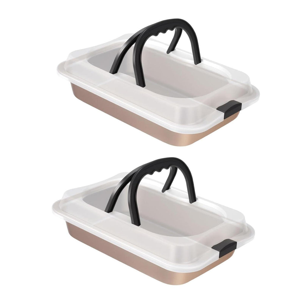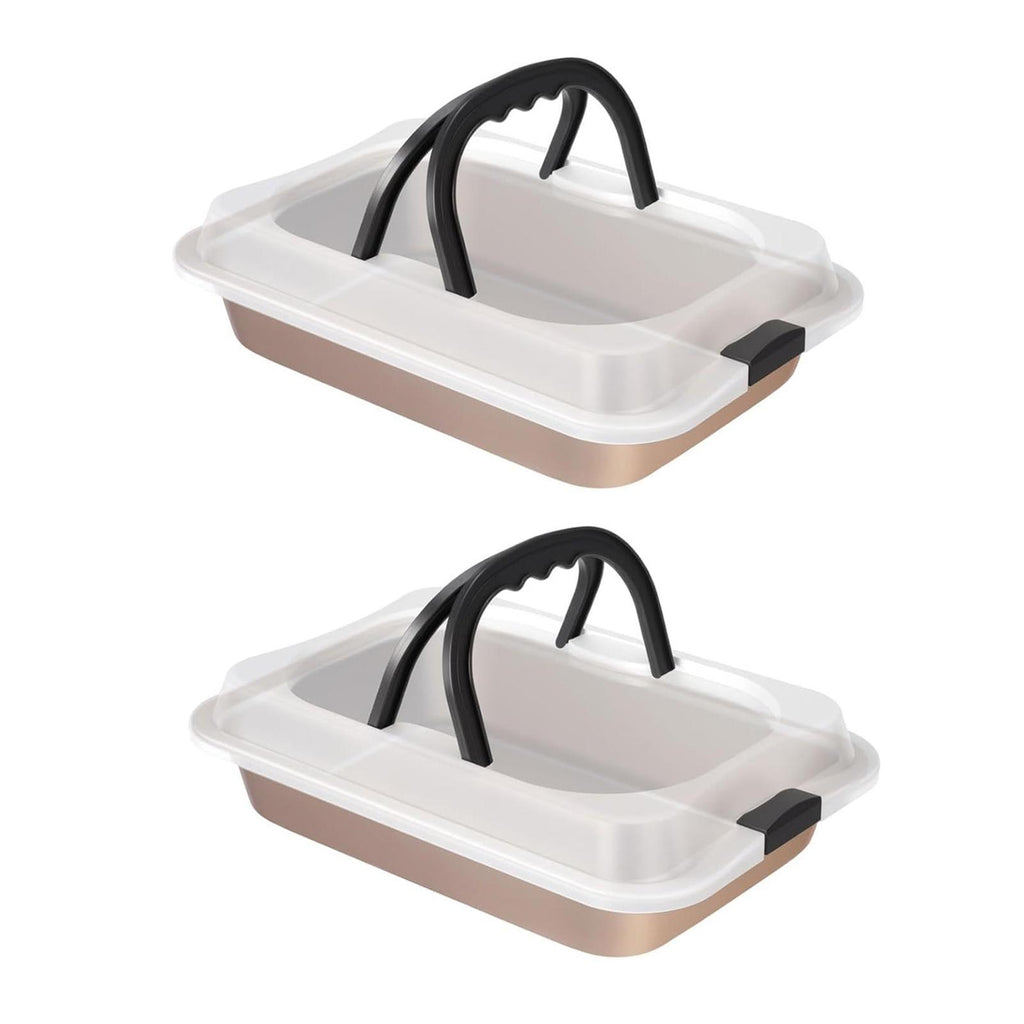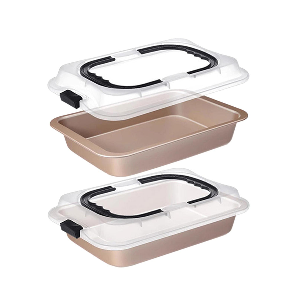2 Pieces Cake Baking Pan Nonstick Cake Carrier for Travel Casseroles Picnics gold