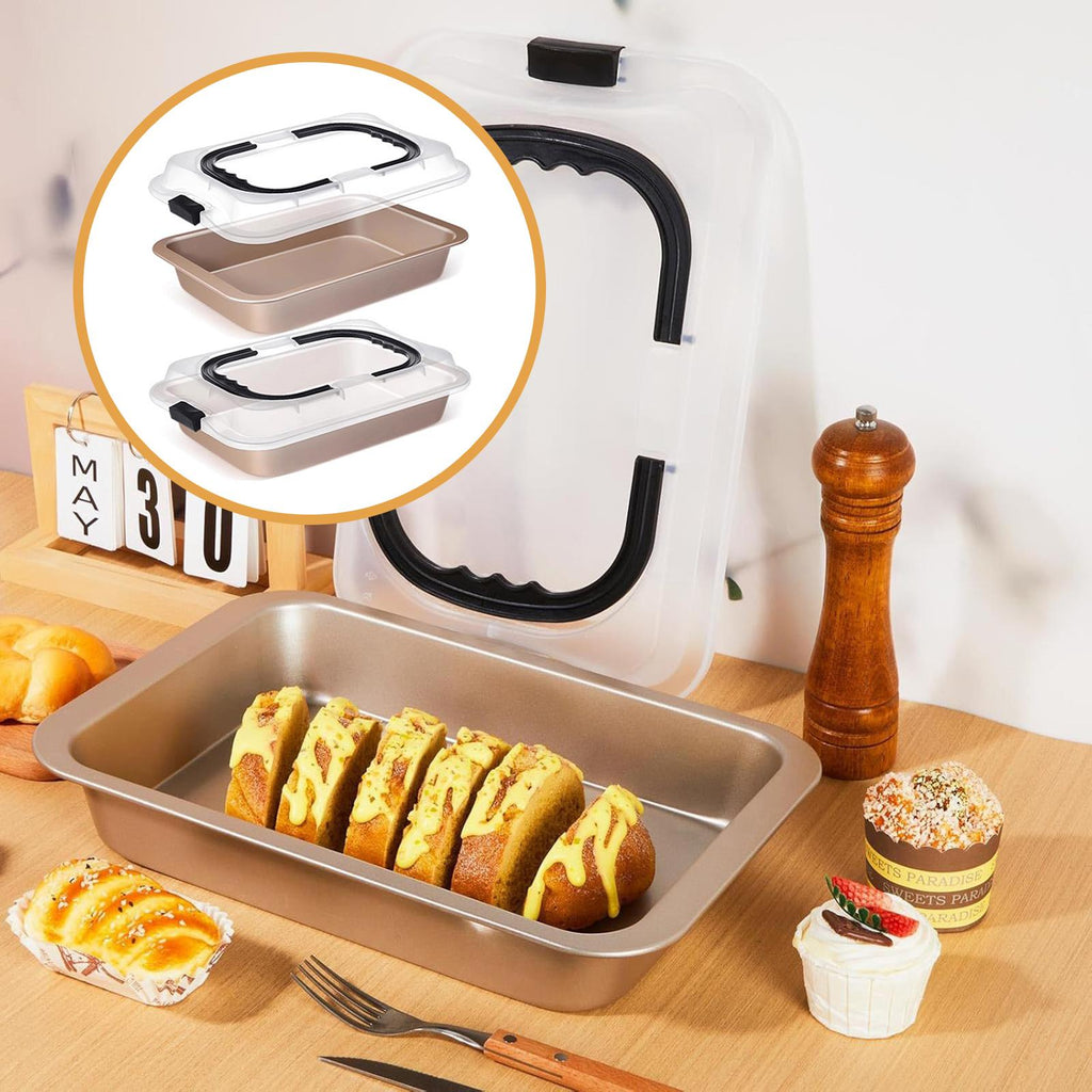 - 【Set】: Includes two non stick Rectangle Cake Pan and two matching lids. It's perfect for large gatherings, meal prepping for the week, and more