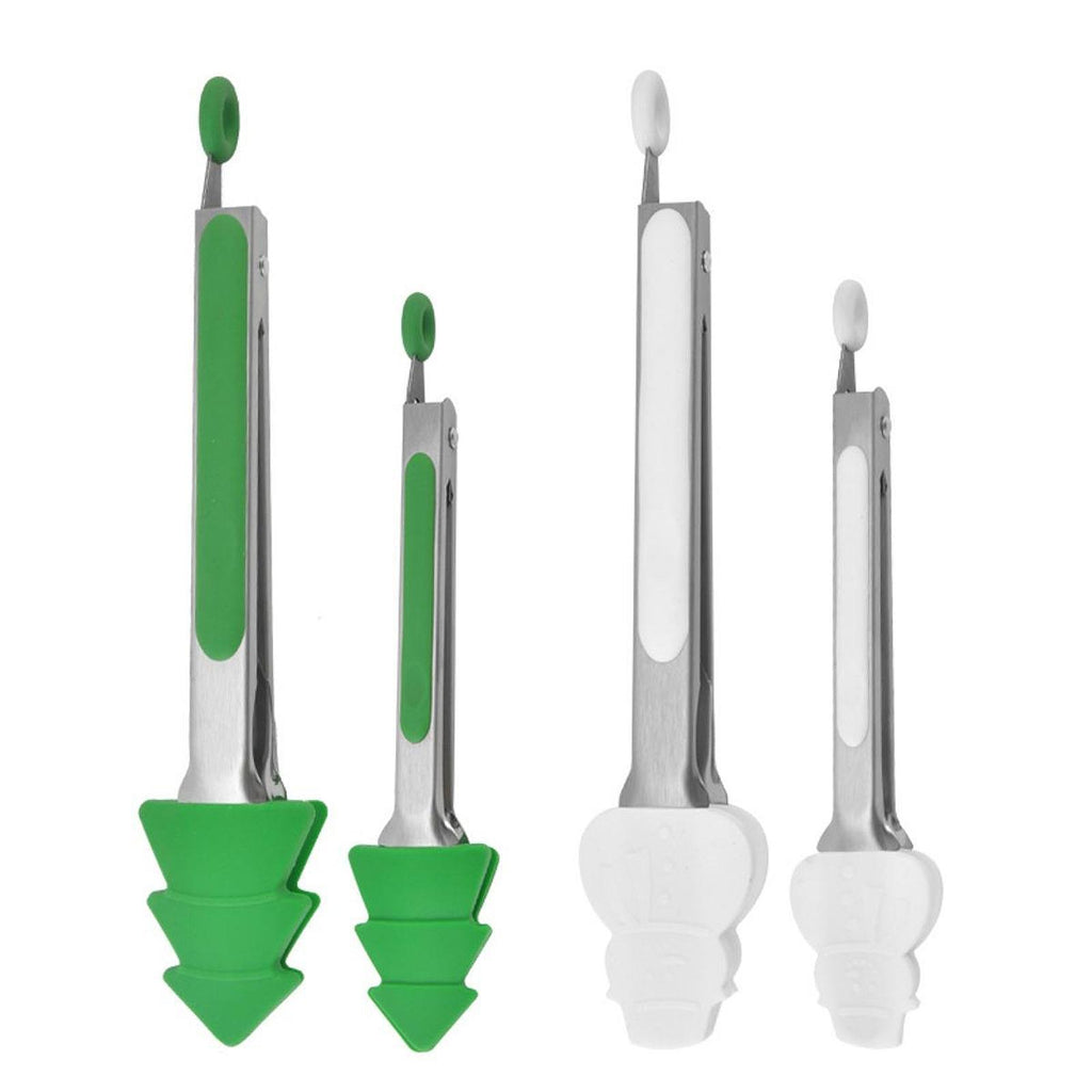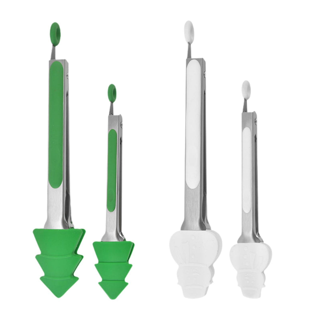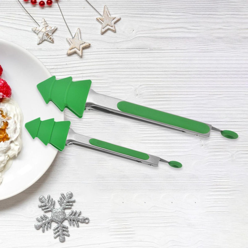 Maxbell 2 Pieces Locking Kitchen Tongs Barbecue Tongs for Home Indoor Outdoor Bakery Green Christmas Tre