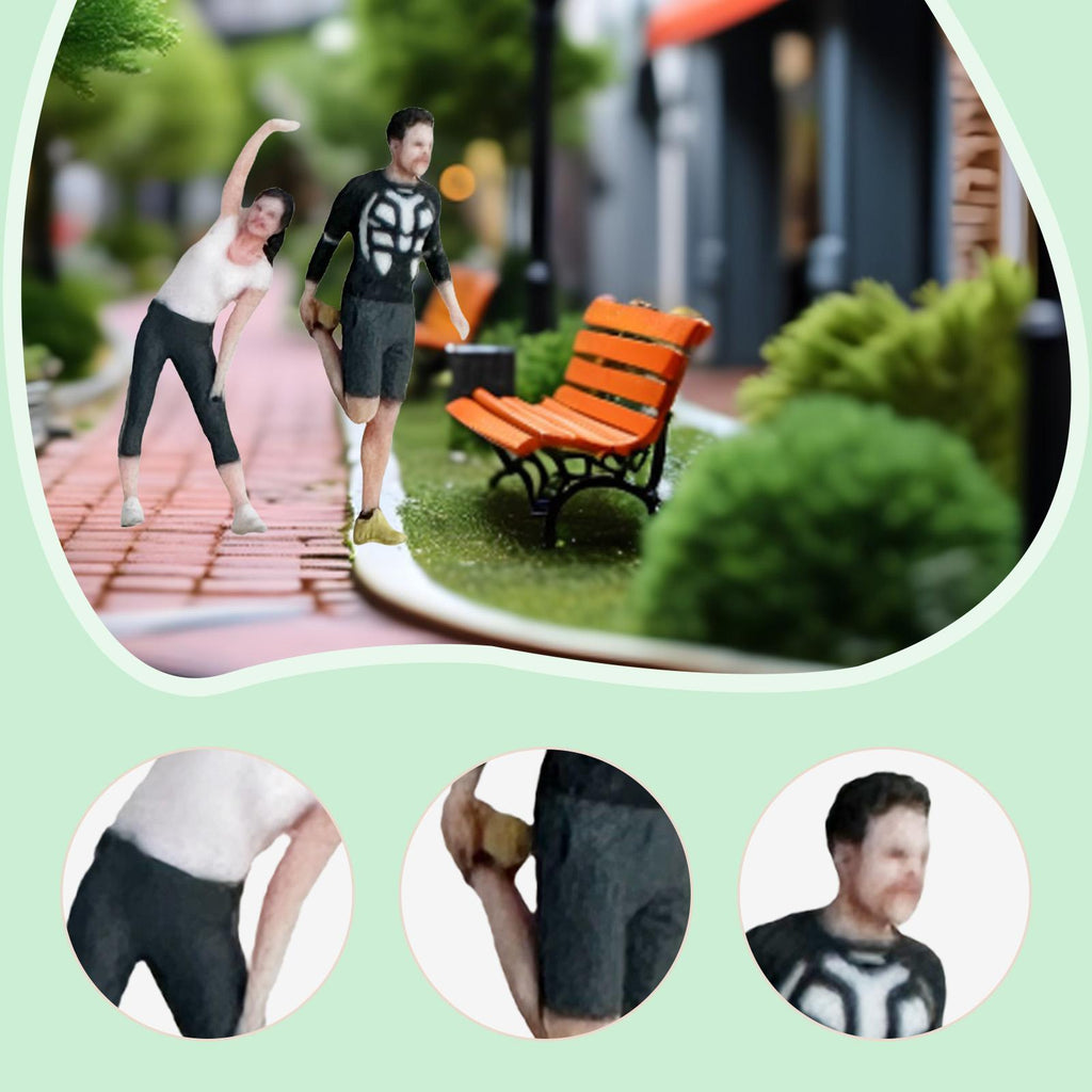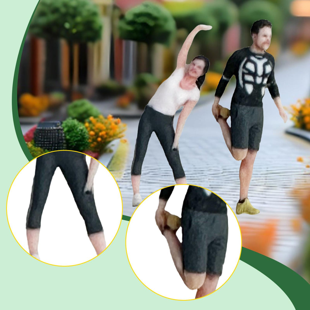 Maxbell 2 Pieces Miniature Sports Figure Dioramas Train Layout Fitness Couple Figure