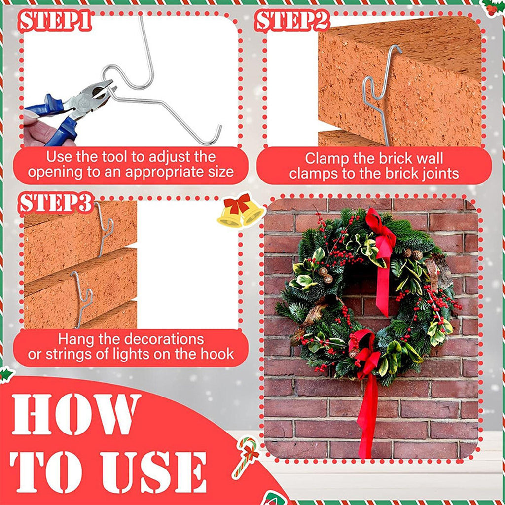 - 【Effortless】: No drilling or complicated tools required, simply wedge the clips into brick joints for quick installation. These brick hook clips are easy to remove and clean, making them ideal for hasslefree redecorating or seasonal changes